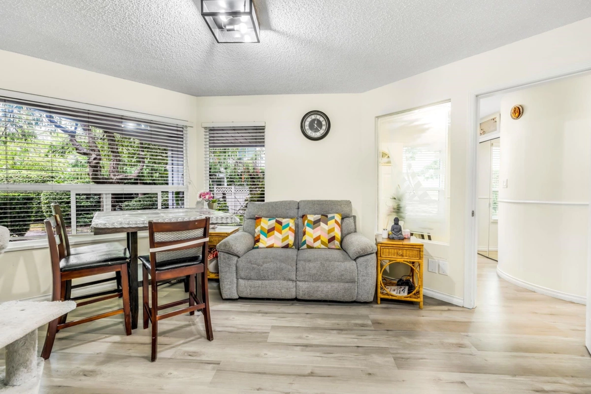 RARE TO FIND! DUPLEX-Style End Unit in the highly sought-after Sunwood Gardens! This spacious 3-bedroom, 3-bathroom townhouse offers almost 1,700 sq.ft. of comfortable living across two levels. The main floor welcomes you with a bright, open living room featuring a cozy gas fireplace—perfect for relaxing evenings. The adjoining dining room flows seamlessly onto a private, south-facing fenced patio, ideal for entertaining guests and enjoying summer BBQs. The well-designed layout also includes a separate family room and a breakfast nook, adding charm to the open kitchen. Upstairs, you'll find generously sized bedrooms, including a huge master suite complete with a walk-in closet and an ensuite bathroom—your private retreat. Great location! close to SEQUAM school, transit, highway, shopping.