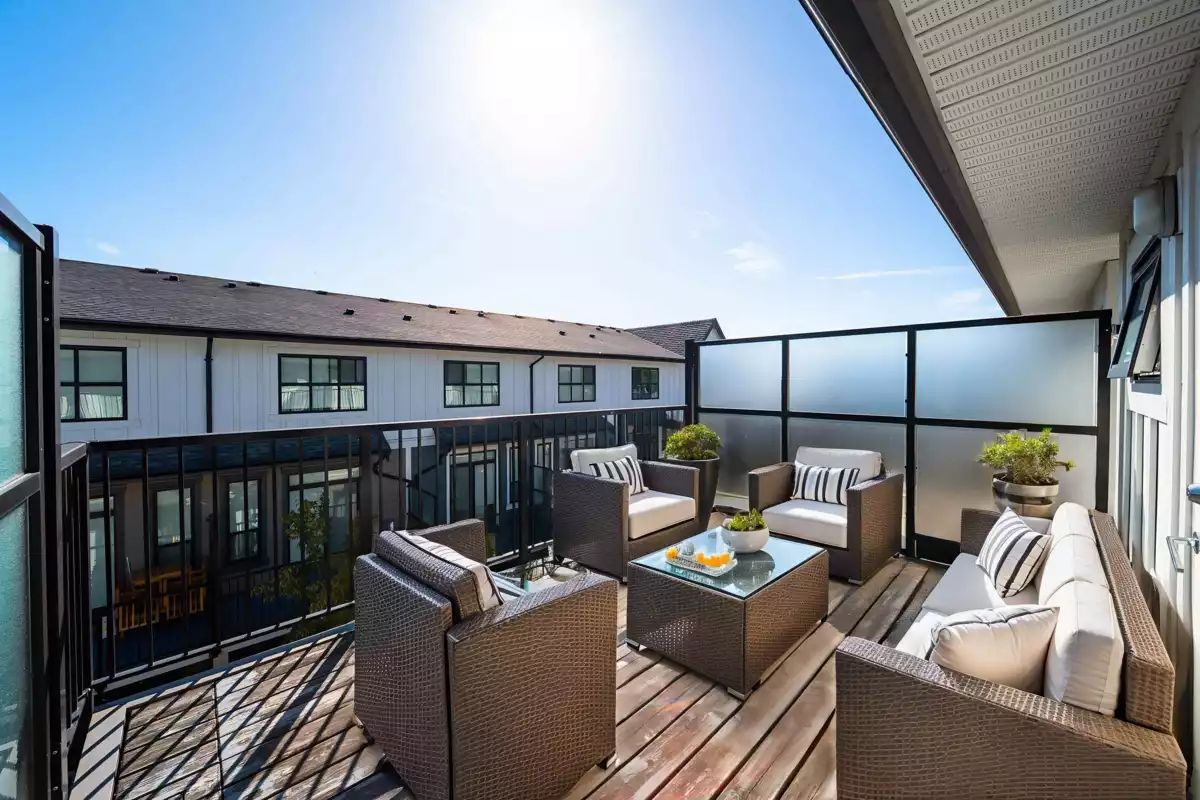 Welcome to Villo Metrotown! a boutique townhouse community just steps from Royal Oak SkyTrain! This spacious 3 bed + den, 2.5 bath home, 1500 SF across 4 levels, featuring a bright open-concept layout, 9' ceilings, laminate flooring, and a modern kitchen with Bosch/Fisher & Paykel appliances, gas stove, and quartz countertops and is move in ready. Enjoy two large patios—including a private rooftop deck off the luxurious top-floor primary suite with walk-in closet and 5-piece en-suite. Includes direct access to TWO secured underground parking stalls, ample storage, and a flex room/office. Triple-glazed windows, smart lighting. Just minutes to Metrotown, Bonsor, Deer Lake, shops, dining & more! , Call your agent now. Open House Sunday January 25th, 1-3pm.