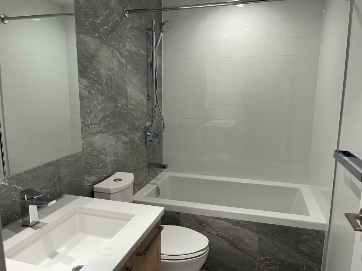 Viewstar is a grant waterfront project. This 2 bedroom unit features view of the garden, engineering hardwood flooring, Miele appliances, Quartz countertop, Blomberg washer & dryer, air conditioning and one parking. The building included indoor swimming pool, party room, study room, study lounge, rooftop of gardens, kid's play area. Prime location, Skytrain station, future pier park and dyke, Yaohan, Canadian Tire, Costco and much more.