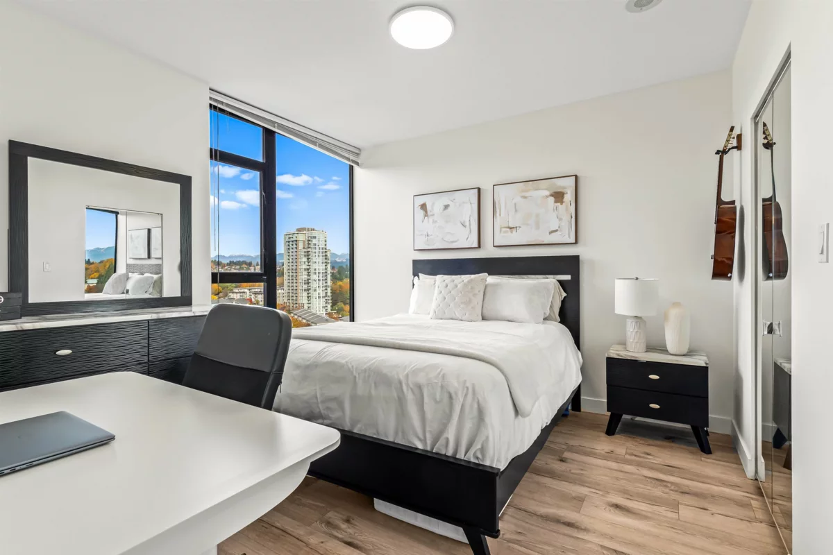 EPIC VIEWS in Victoria Hill by ONNI, a Georgie Award-winning Residential Development of the Year! This bright 2 BED/ 2 BATH South West CORNER home in the master-planned community offers over 180° views of the mountains, city skyline and Queen's Park. Thoughtful layout with separated bedrooms, open kitchen/living area and a large, usable balcony flooded with natural light. Concrete construction for comfort, privacy and peace of mind. All in a tranquil, walkable neighbourhood with Greenway, shopping, transit and SkyTrain just minutes away. On your downtime, enjoy the outdoor pool, gym, hot tub and guest suites for visiting family, all in your own building. Move in and enjoy the lifestyle!