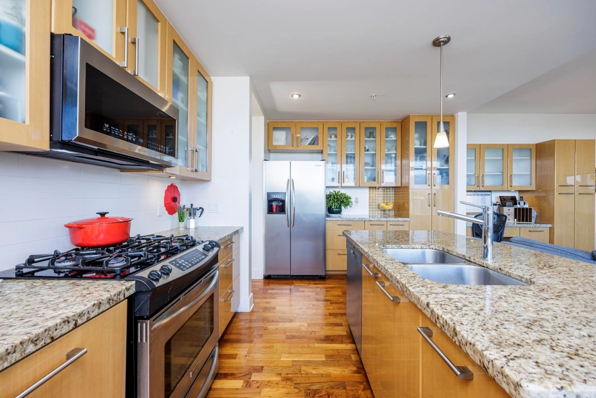 A fabulous centrally located PENTHOUSE offering 1,744sqft, 2 bedrooms and den, 3 bathrooms and amazing VIEWS!! A corner suite whose innovative design includes wide plank hardwood floors, cozy gas fireplace and floor to ceiling Low E, Smart glass thermal windows. Enjoy an expansive 700sqft roof top patio perfect for summer b-b-q or relaxation while taking in awesome SE views. The kitchen features granite counters, textured glass upper cabinets, ceramic tile backsplash, stainless appliances and an eating bar/island open to the family room for easy entertaining. A huge primary bdrm boasts spa-like ensuite to pamper yourself, walk-in closet, + 2nd bdrm has ensuite bath too! Lovely amenities, superb location and LEED certified! 2 parking & storage included. OPEN SAT/SUN JAN 31st & FEB 1st 2-4.