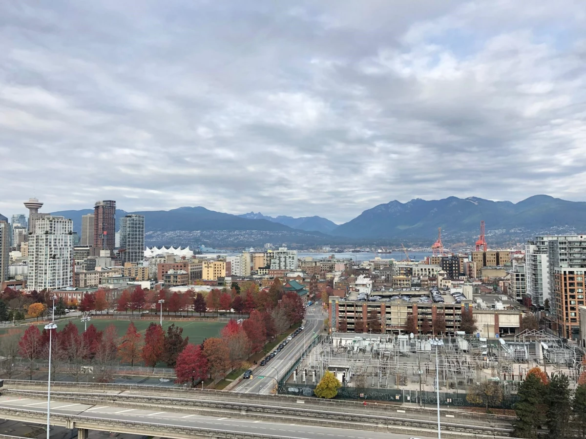 SUPERBLY DESIGNED HIGH FLOOR TWO BEDROOM CORNER HOME WITH PANORAMIC CITY, MOUNTAIN + WATER VIEWS. THE SUITE - practical layout for a couple or young family. 2 "real" bedrooms, including primary with walk through closet + semi en suite. Open kitchen, h/w floors + in suite laundry. Faces NE over historic Gastown across Burrard Inlet to the Northshore mountains beyond. Large balcony. Storage locker. THE BUILDING - CREEKSIDE by BOSA - top quality concrete construction, gym, steam, sauna + courtyard garden. Directly across from the Seawall, short walks to Olympic Village, Yaletown, BC Place, Rogers Arena and endless shops/restaurants/cafes (walkscore 98!). 2 blocks to Skytrain station + new St Paul's hospital. Easy access to Hwy 1. RARE BONUS: TWO PARKING STALLS (side by side + EV charger).