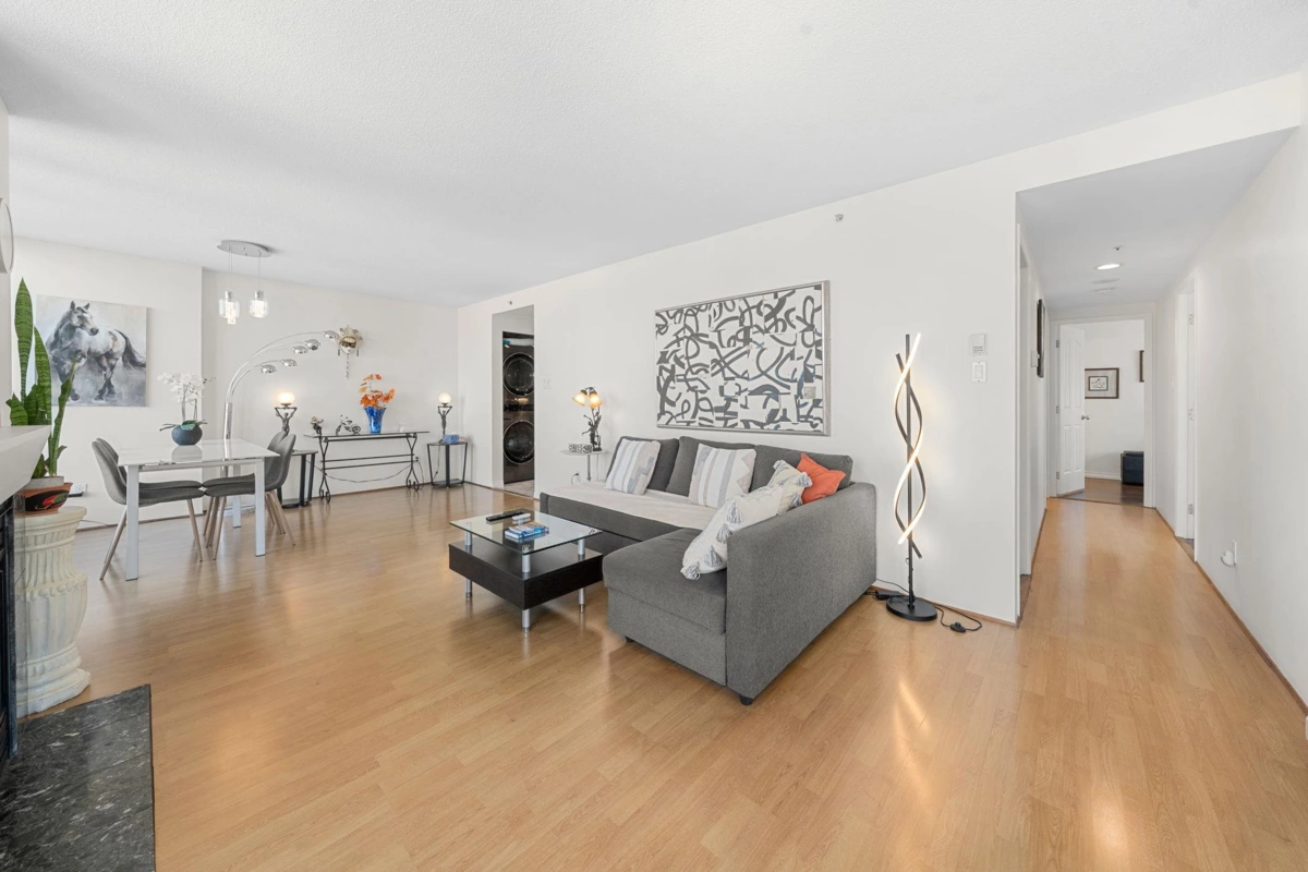 Bienvenue à la Paris Place! This bright 2 bed + large den, 2 bath home offers a generous layout & a spacious patio with stunning Water & North Shore mountain views. Includes 1 parking stall. Pet friendly and short-term rentals allowed, making it ideal for both families & investors, especially with the upcoming FIFA World Cup. Unbeatable location: steps to Rogers Arena, BC Place, SkyTrain, Costco, T&T, top restaurants, and the business district. Enjoy wonderful amenities: pool, gym, jacuzzi & sauna. With major roof and piping projects already paid for, and the home freshly painted, you can move in with confidence and bienvenue à la maison. Book your private showing today!