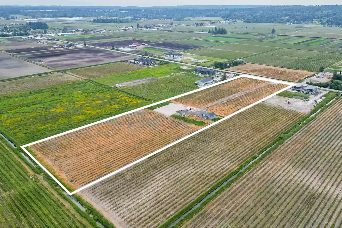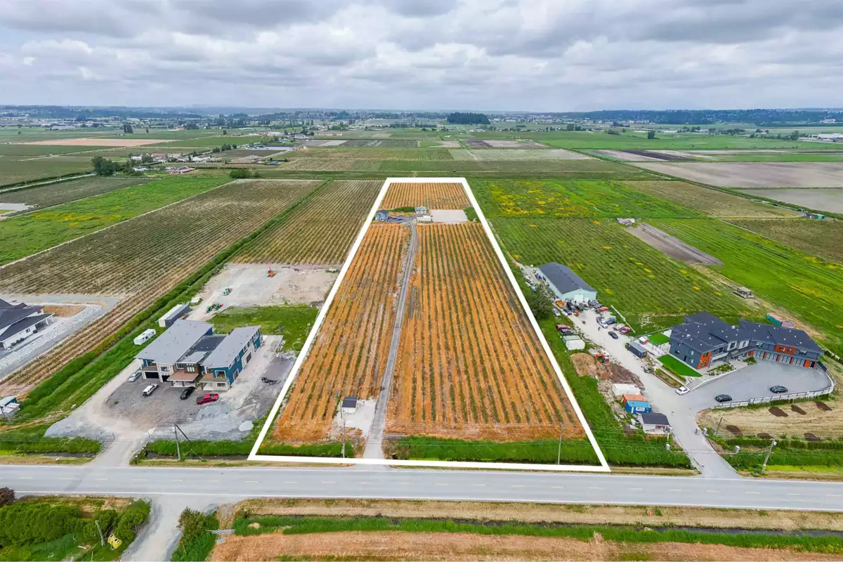 9.43 ACRES WITH TWO HOUSES AND BLUEBERRY FARM! Rare opportunity to build your dream home of 5,400 SQ/FT 600 Feet from 40 Avenue, and access to all utilities (City Water, Gas, Hydro, and Electricity). Centrally located just east of Morgan Creek with amazing valley and mountain views. The property has 2 - 1,800 square feet of houses. The first house has 2 bedrooms & 1 bath with an unfinished basement; the second house has a total of 4 bedrooms & 2 baths. 10,000 SQ/FT Preload area approved for a 7,700 SQ/FT Building. The property is planted in three-year-old Liberty variety blueberry with full drip irrigation. Close to all amenities; schools, transit, and shopping. Easy access to Highway #10, Highway #15, and the US Border.