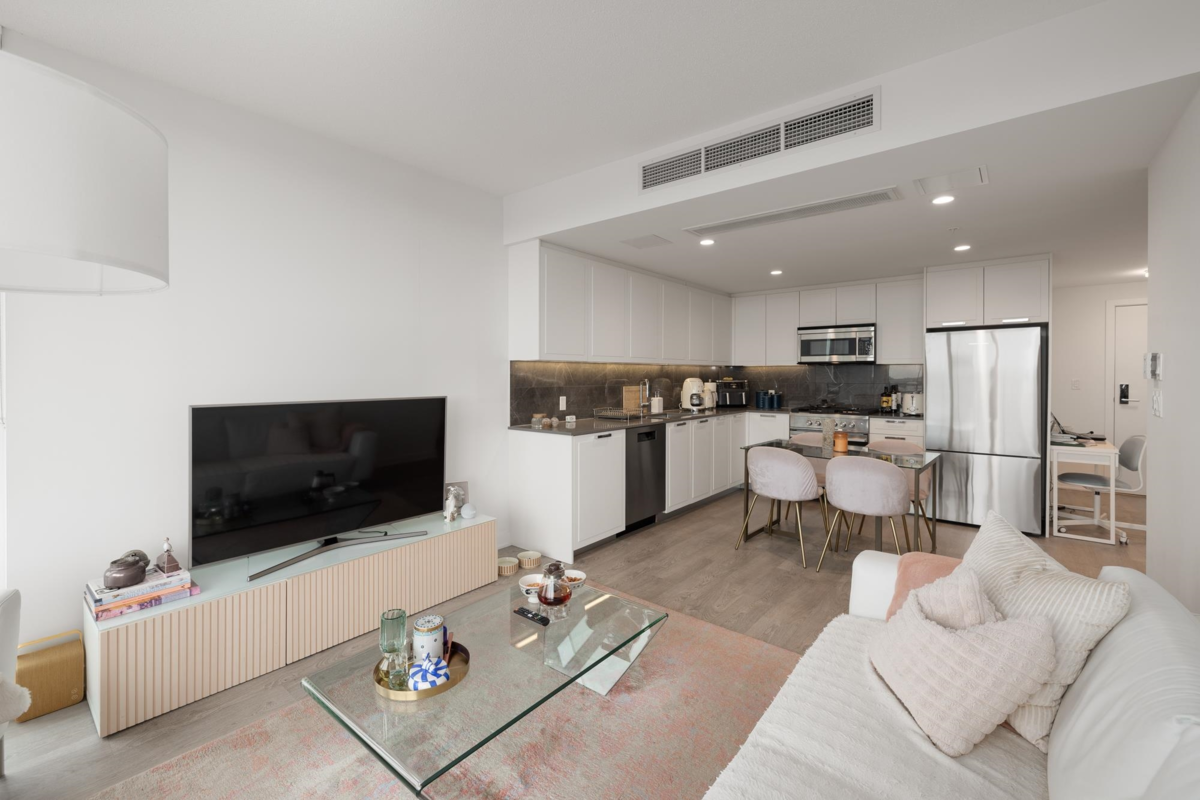Panoramic Water & City Views at Hunter at Lynn Creek! Experience luxury living in this bright and spacious southwest-facing 1-bed + den (649 sqft) home with air conditioning & EV charger, located in one of the most sought-after North Vancouver communities. The open-concept kitchen features quartz countertops, modern cabinetry, stainless steel appliances, and a gas cooktop, perfect for everyday living and entertaining. Enjoy the generous balcony with unobstructed panoramic views of the water, city, and Second Narrows Bridge. Just minutes from shopping, dining, Deep Cove, and Highway 1, this home offers both convenience and tranquility. Building amenities include a party room, fully equipped gym, outdoor BBQ area, children’s play area, sauna, social lounge, wellness centre, bike repair room.