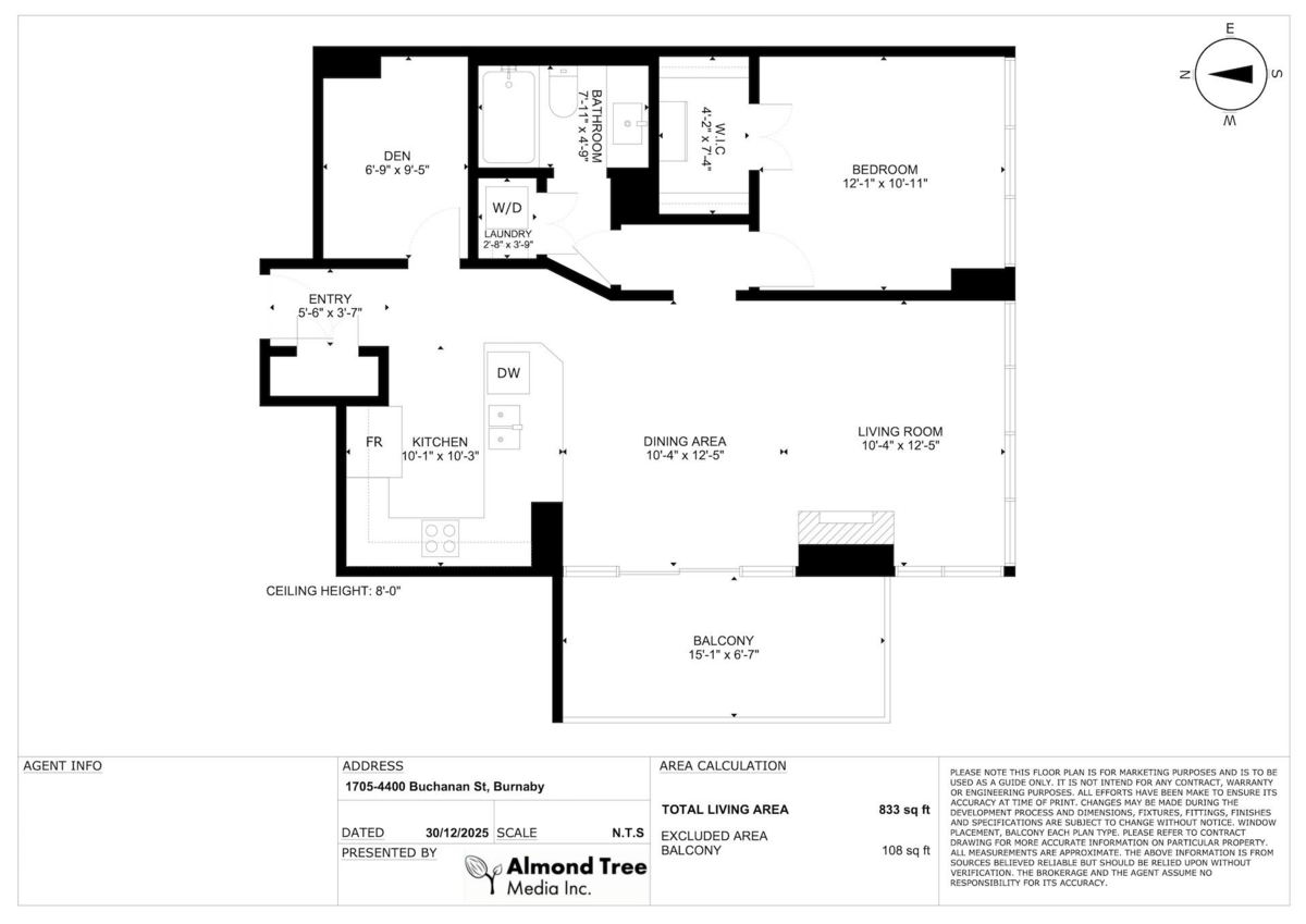 Bright, LARGE 1 bed and den (large enough as a 2nd bedroom) southwest CORNER UNIT by Bosa. Great views of the city, Mount Baker, Burrard Inlet, and north shore mountains. Large South & West facing windows allow plenty of light and access to beautiful sunsets. Open concept design provides space for your design expressions. Upgrades include engineered hardwood, larger bathroom, stainless steel appliances, quartz countertop, cabinets, front load washer and dryer. Conveniently located 1 block to SkyTrain, Brentwood Mall, great restaurants, banks, coffee shops, Whole Foods. Large 4.75 ft x 8 ft x 6 ft tall storage, and 8ft wide parking spot included. Building is pet friendly, includes gym, party room, meeting room, outdoor playground, hot tub & sauna.