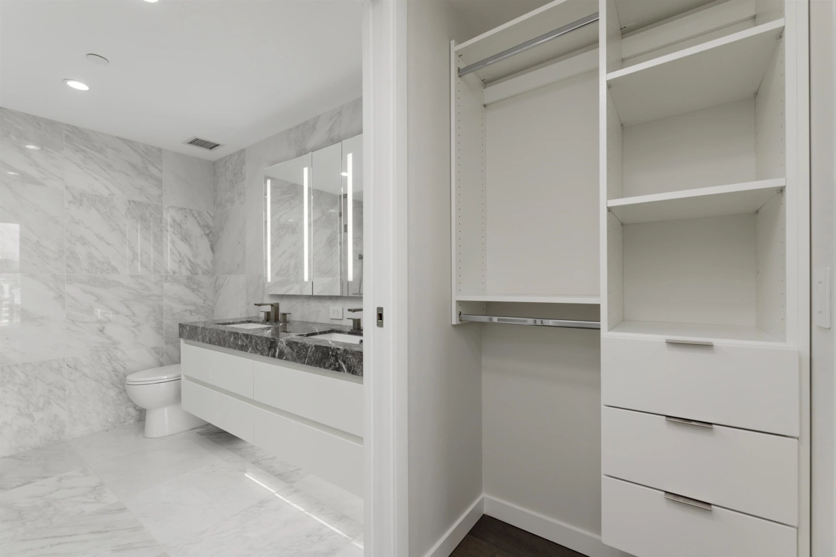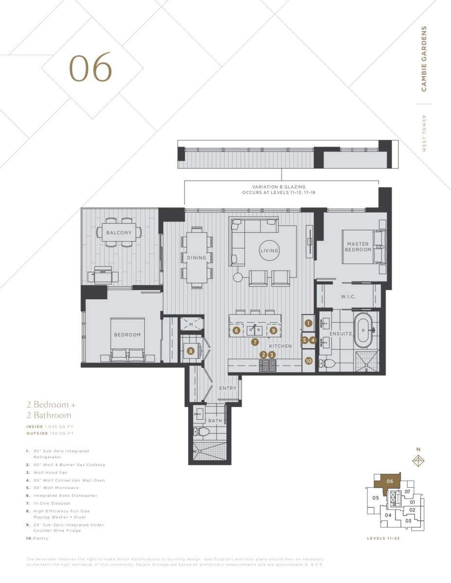 This North facing 1040 SF Two bedroom home is located at Cambie Gardens, Onni Group's masterplanned community on Vancouver's westside. Lavishly finished w/ engineered HW flooring in bedrooms, heating & cooling system, automated lighting & sleek roller shades. A gourmet kitchen includes natural stone countertops, oversize waterfall island & premium Sub Zero + Wolf appliance package. Spa-inspired bathrooms boast marble countertops, Nuheat flooring & oversized mirrors w/ LED lighting. Bedrooms showcase walk-in-closets. Parking included.