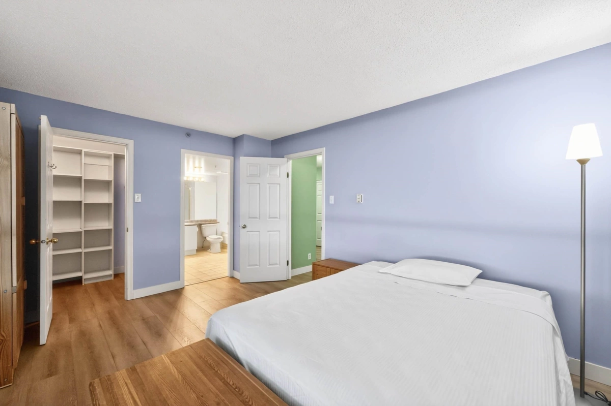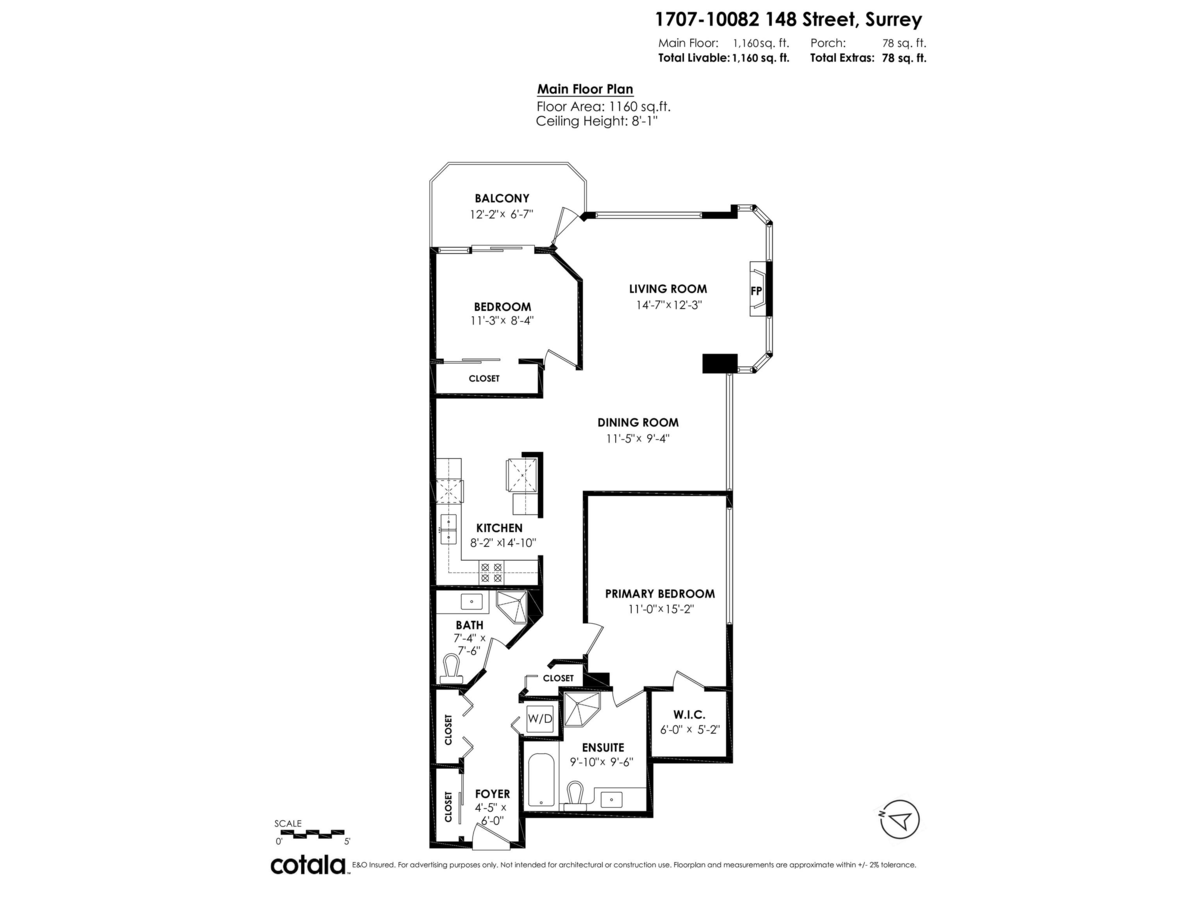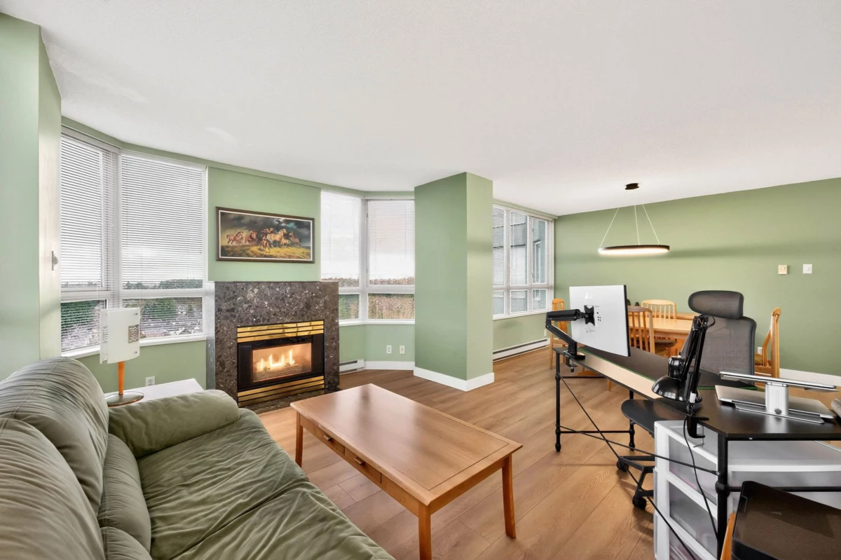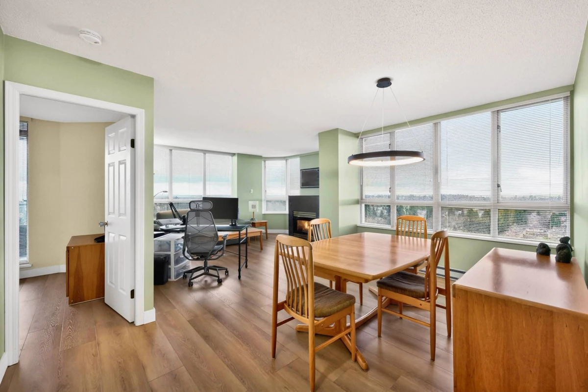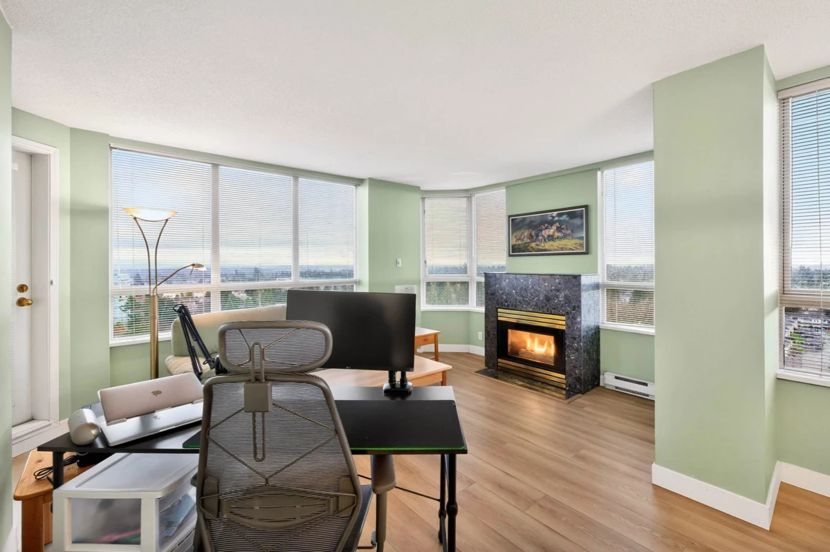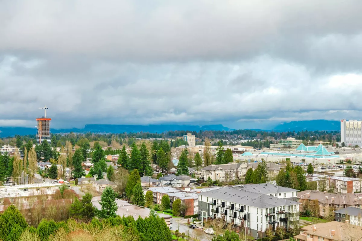 Welcome to The Stanley! This spacious 1,160 sq ft 2 bed, 2 bath corner home sits high on the 17th floor with bright south-east exposure and sweeping city & park views. Smart layout with generous living/dining area, gas fireplace and covered balcony. Primary bedroom features a full ensuite and ample closet space. Well-run concrete building with resort-style amenities. Steps to transit, Guildford Mall & Green Timbers.