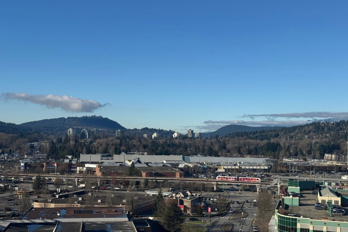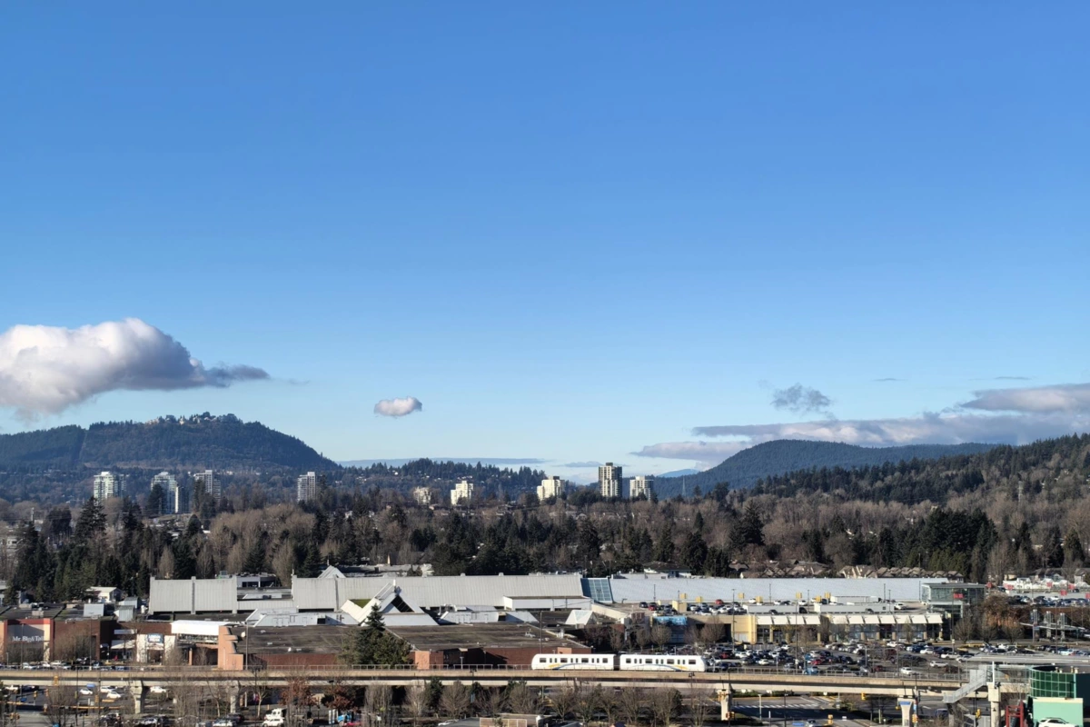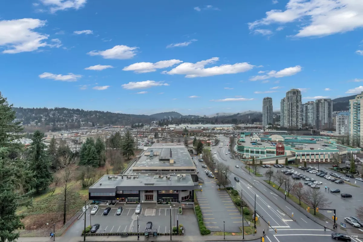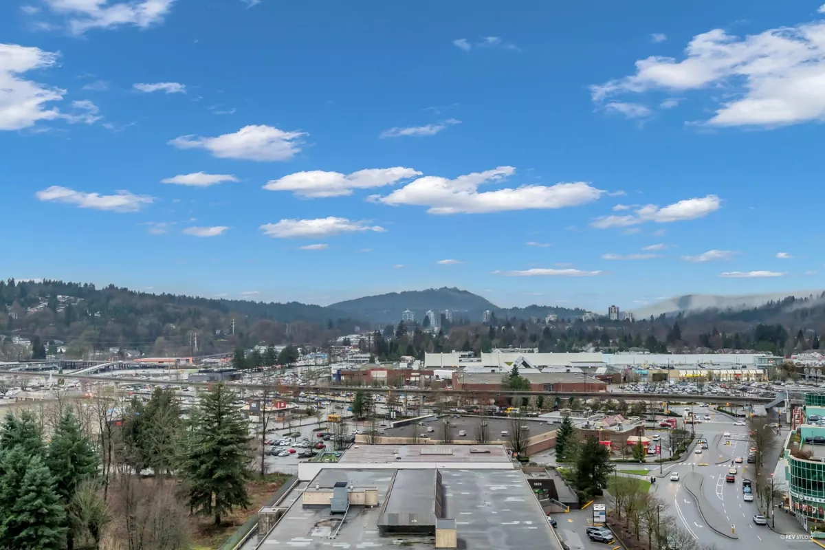 Unobstructed panoramic Burnaby Mountain and City Skyline VIEWS. Ideally located in the heart of Coquitlam Centre, yet tucked away in a quiet, park-front setting. Steps to Lincoln SkyTrain Station, Coquitlam Centre, Public Library, Henderson Place, and T&T Supermarket. This southwest CORNER home features a bright and efficient 2-bedroom, 2-bathroom open layout, with bedrooms positioned on opposite sides for maximum privacy. Freshly painted throughout and in excellent condition. Enjoy your morning coffee or gorgeous sunset in the evening on the spacious balcony. Residents enjoy over 16,000 sqft of amenities, including a fitness centre, outdoor lap pool, two guest suites and more. 1 large parking stall and 1 locker included. EV charging available. **Open House 2-4pm on Jan 24 (Sat)*Must see!