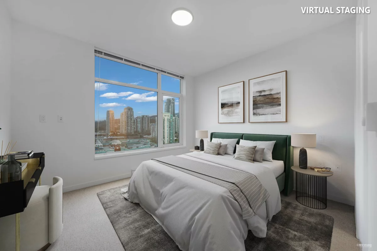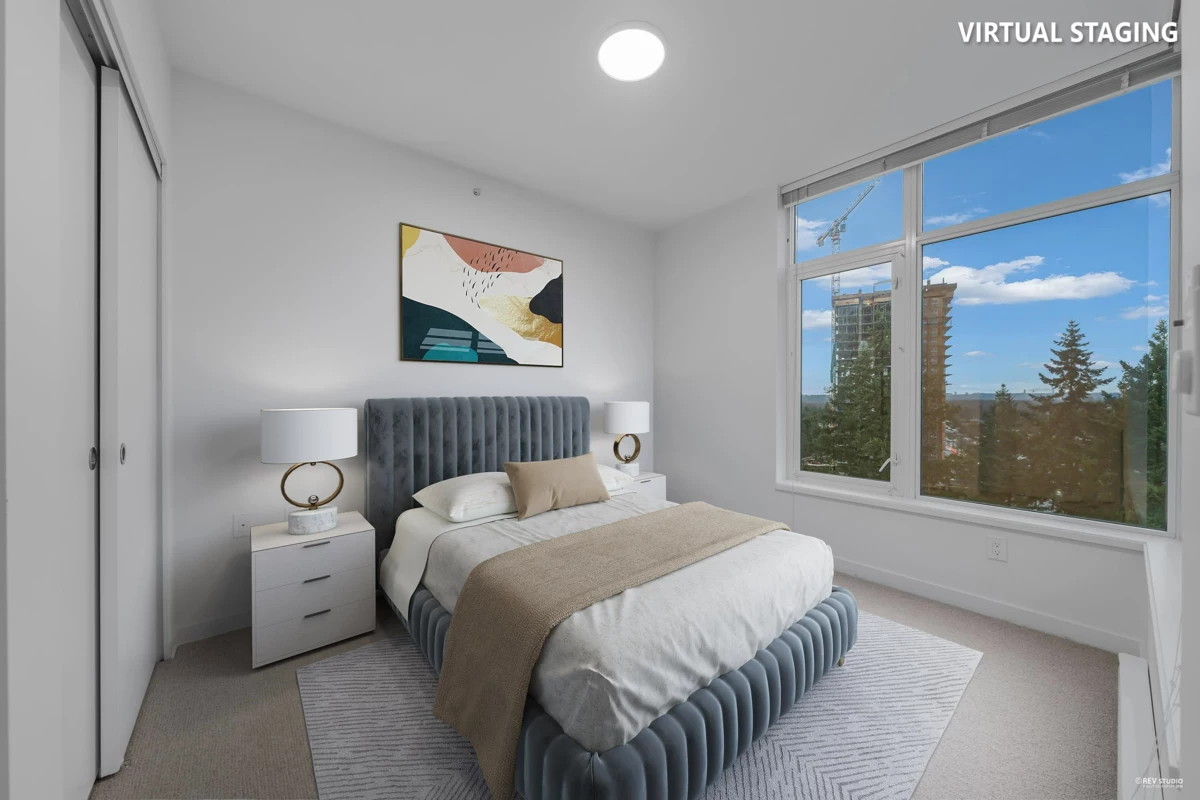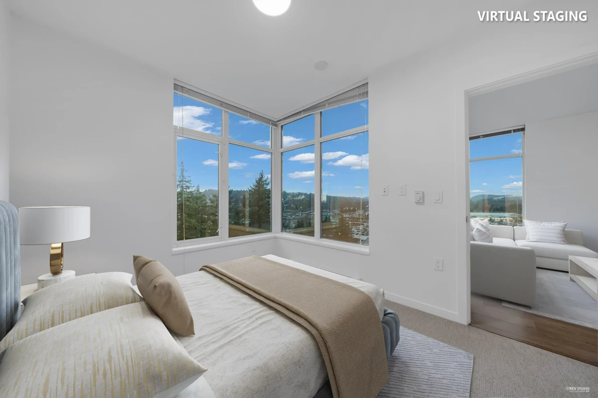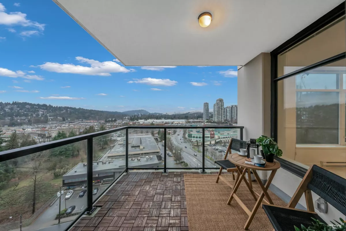 Unobstructed panoramic Burnaby Mountain and City Skyline VIEWS. Ideally located in the heart of Coquitlam Centre, yet tucked away in a quiet, park-front setting. Steps to Lincoln SkyTrain Station, Coquitlam Centre, Public Library, Henderson Place, and T&T Supermarket. This southwest CORNER home features a bright and efficient 2-bedroom, 2-bathroom open layout, with bedrooms positioned on opposite sides for maximum privacy. Freshly painted throughout and in excellent condition. Enjoy your morning coffee or gorgeous sunset in the evening on the spacious balcony. Residents enjoy over 16,000 sqft of amenities, including a fitness centre, outdoor lap pool, two guest suites and more. 1 large parking stall and 1 locker included. EV charging available. **Open House 2-4pm on Jan 24 (Sat)*Must see!