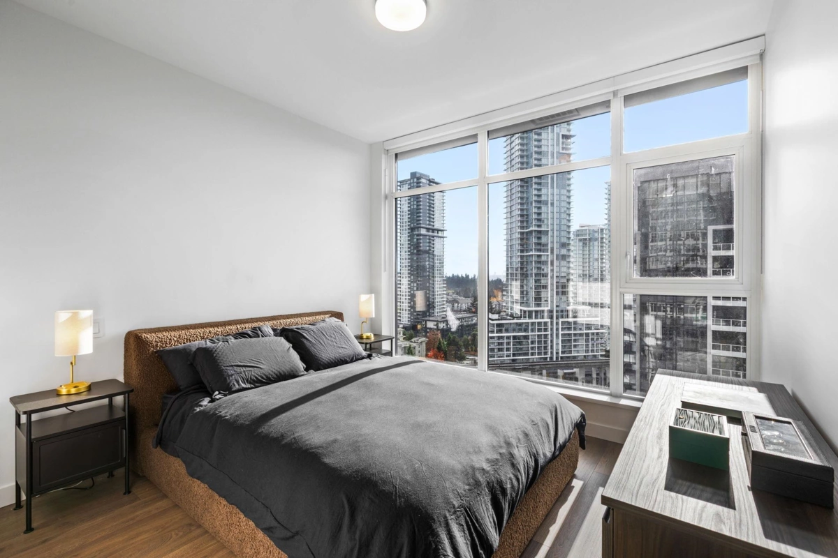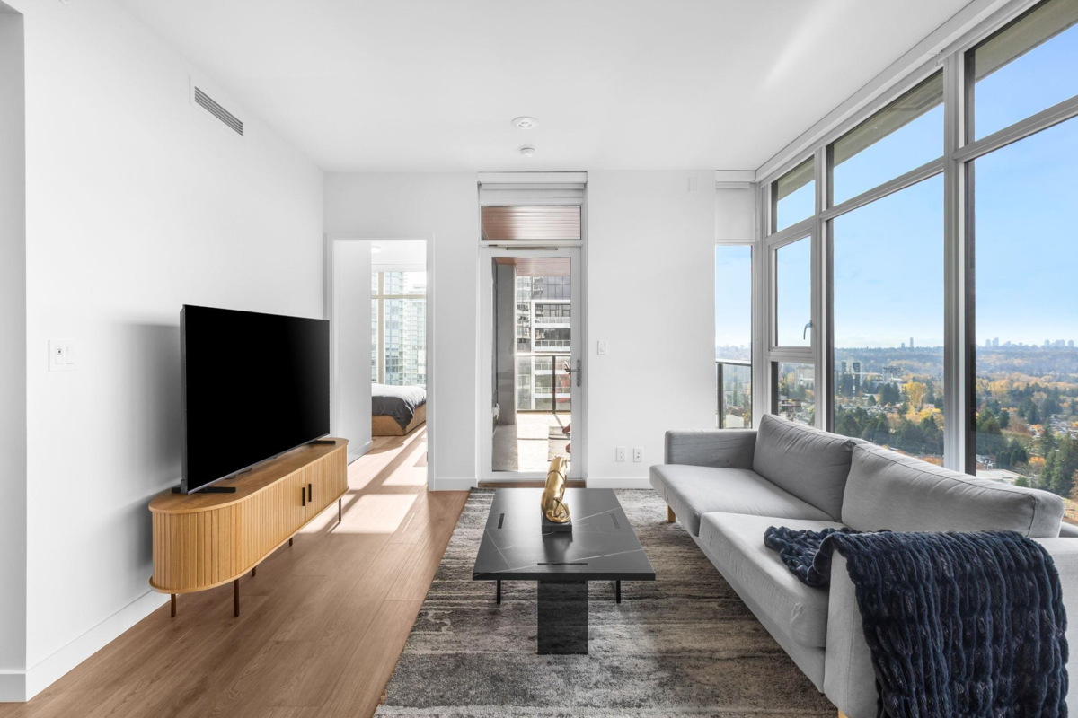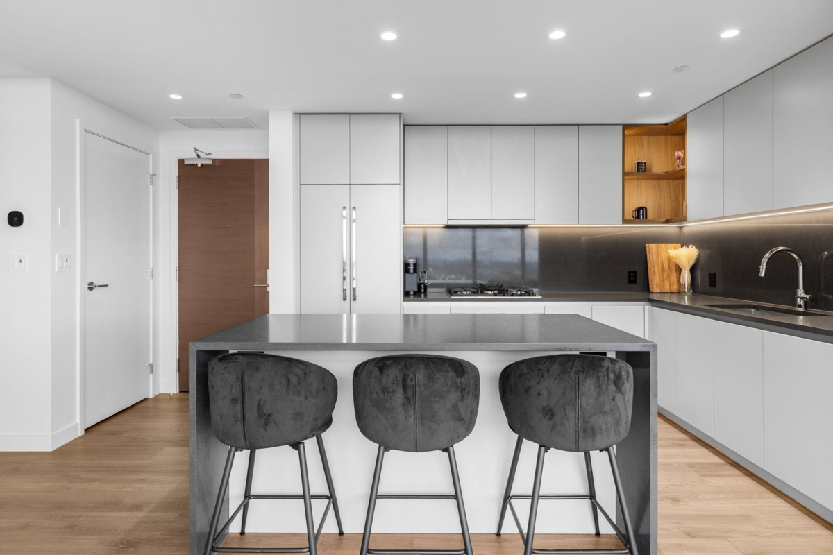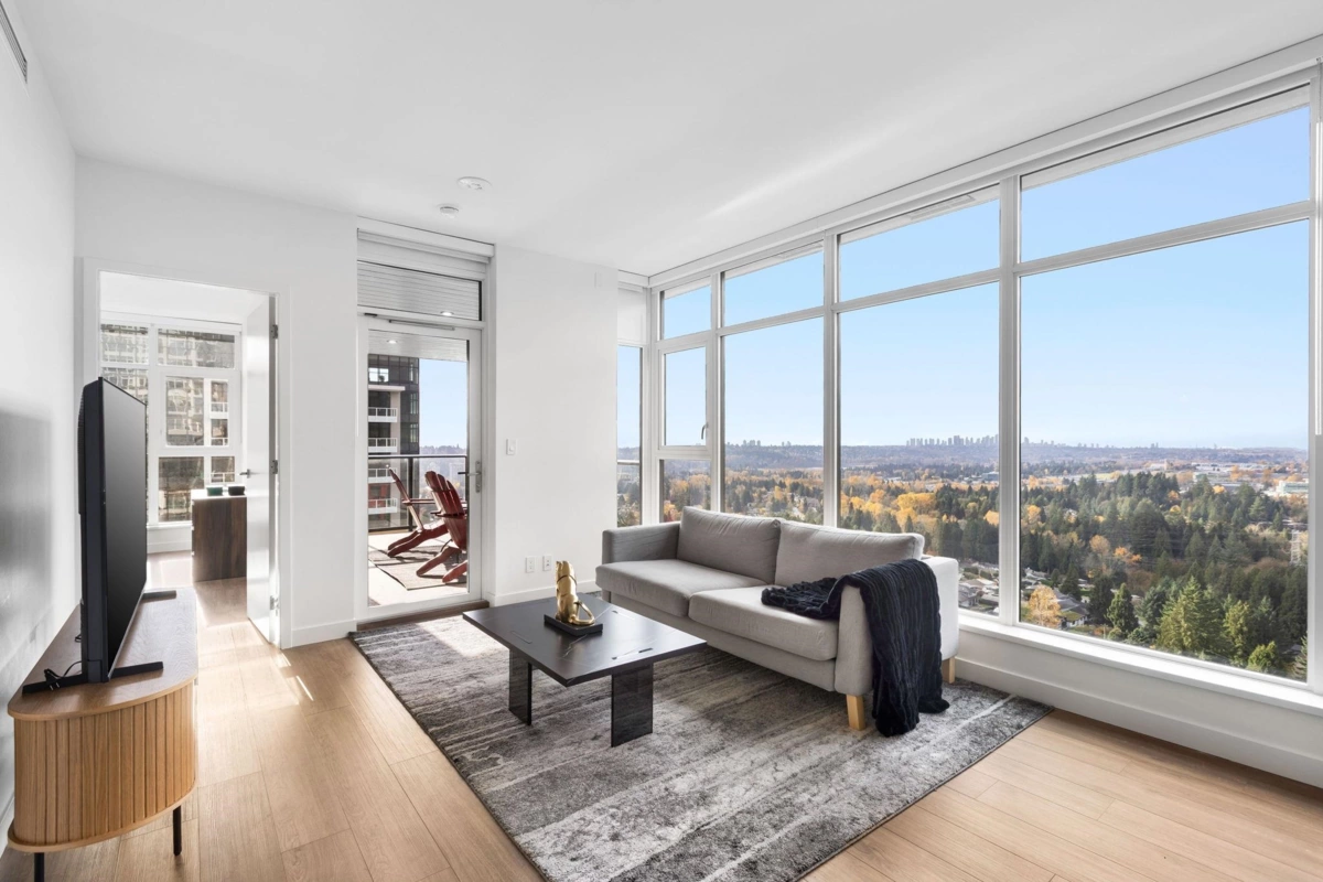 Discover the Boffo difference—generations of Italian craftsmanship distilled into Smith & Farrow, Coquitlam's new benchmark for luxury living! This 3 bed+flex residence features 9' ceilings, A/C and 37ft of floor-to-ceiling panoramic windows that flood the home with natural light. The chef-inspired kitchen showcases custom cabinetry, full-size premium integrated Fisher & Paykel appliances, quartz countertops, a 6ft waterfall island, and brilliant storage solutions. Enjoy a massive covered balcony for year-round entertaining. Resort-style amenities include a 65-ft outdoor pool, hot tub, sauna/steam room, fitness centre, 3600SQFT rooftop lounge, and concierge service—all just steps from Burquitlam SkyTrain, parks, shops, and dining. Two parking! Experience unmatched legacy-living by Boffo.