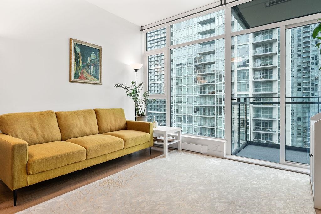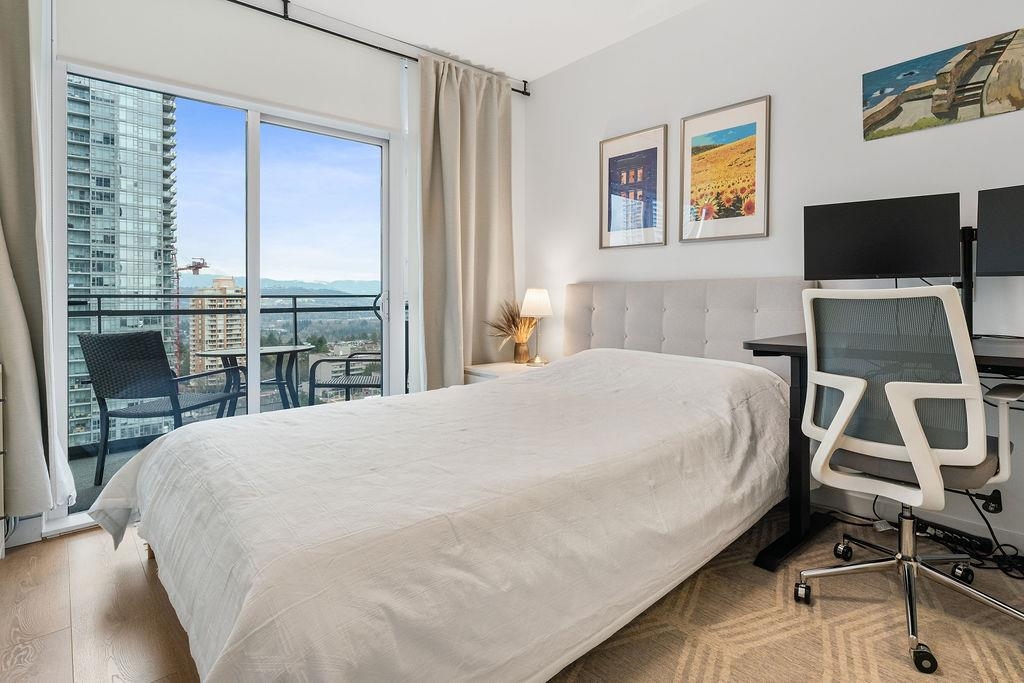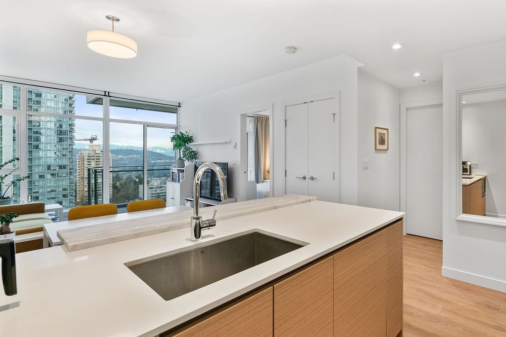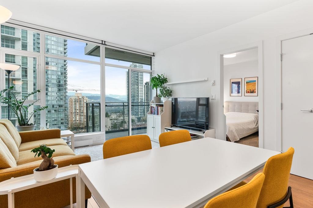 A rare, large one-bedroom home on the 17th floor, offering a bright and spacious layout with oversized living areas and expansive windows showcasing beautiful city and mountain views. The modern kitchen and generous bedroom create a comfortable and highly functional living space. The unit is owner-occupied and in pristine, like-new condition. This modern, well-maintained building is ideally located just steps from Metrotown shopping, restaurants, and transit, and offers excellent amenities. The home includes one parking stall equipped with an EV charger and a storage locker—an exceptional added bonus. A hard-to-find large one-bedroom in a prime location—don’t miss this opportunity!