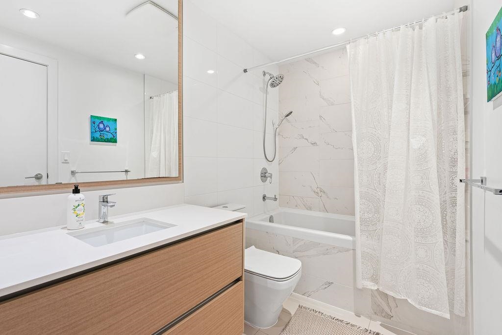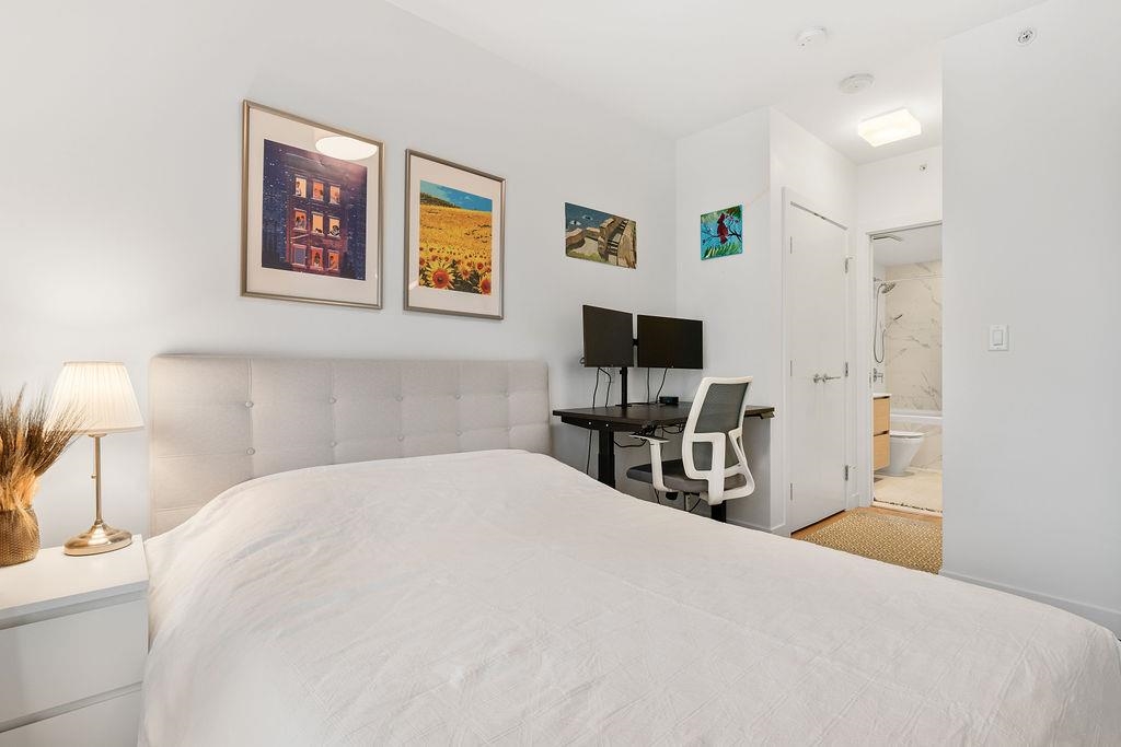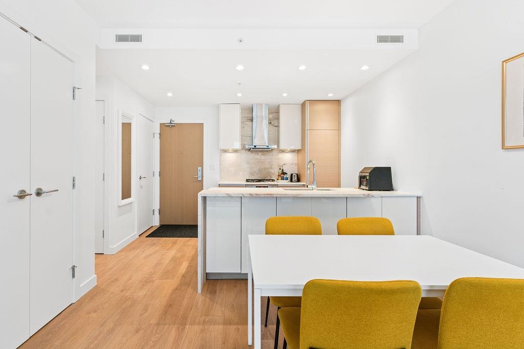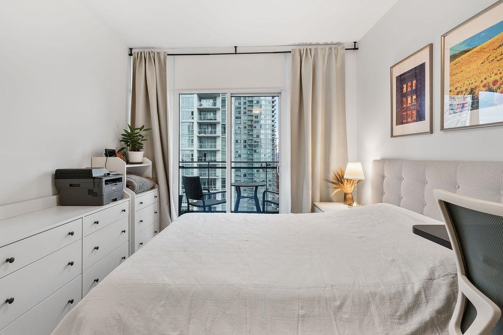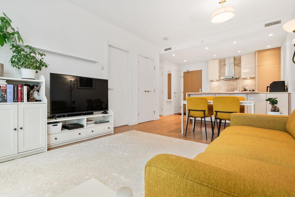 A rare, large one-bedroom home on the 17th floor, offering a bright and spacious layout with oversized living areas and expansive windows showcasing beautiful city and mountain views. The modern kitchen and generous bedroom create a comfortable and highly functional living space. The unit is owner-occupied and in pristine, like-new condition. This modern, well-maintained building is ideally located just steps from Metrotown shopping, restaurants, and transit, and offers excellent amenities. The home includes one parking stall equipped with an EV charger and a storage locker—an exceptional added bonus. A hard-to-find large one-bedroom in a prime location—don’t miss this opportunity!