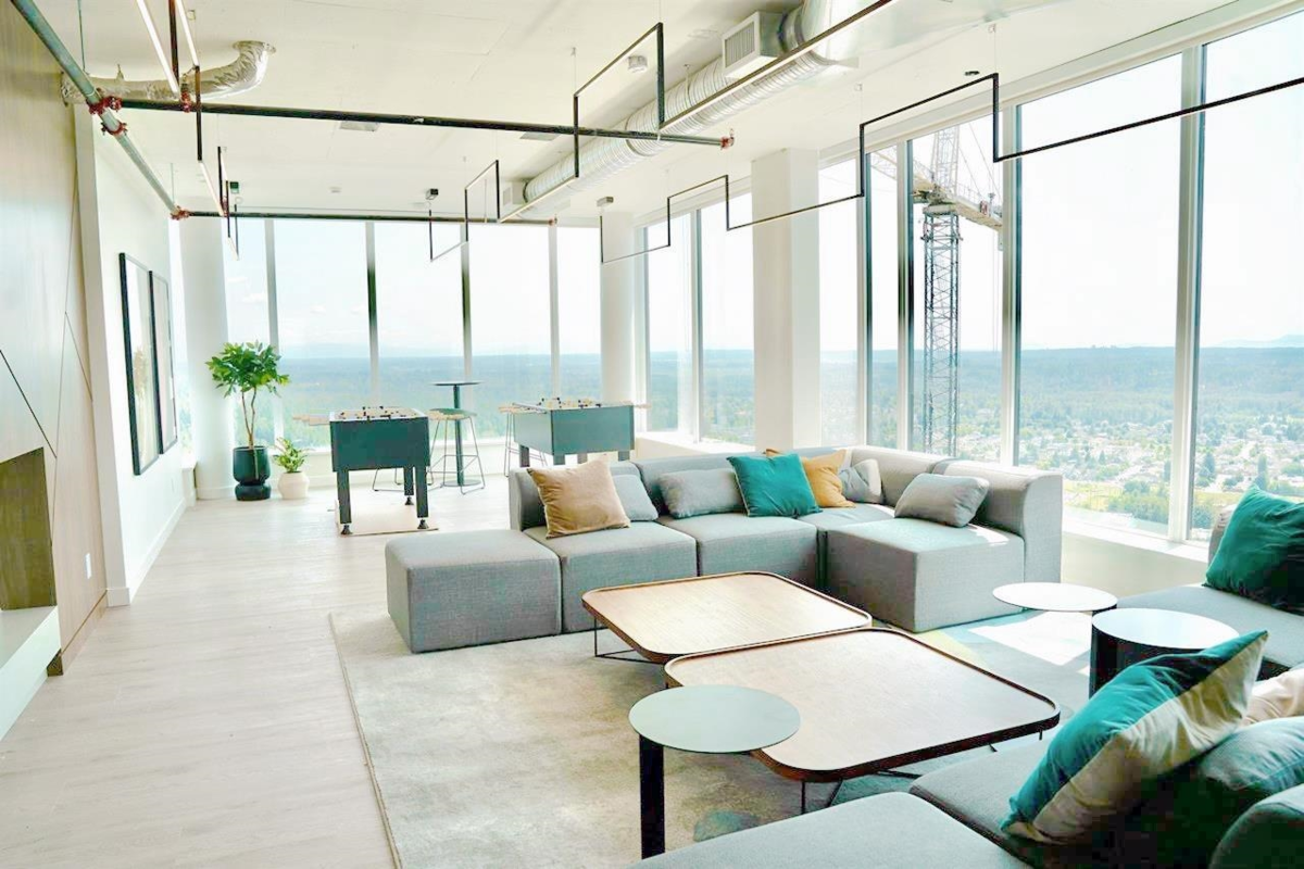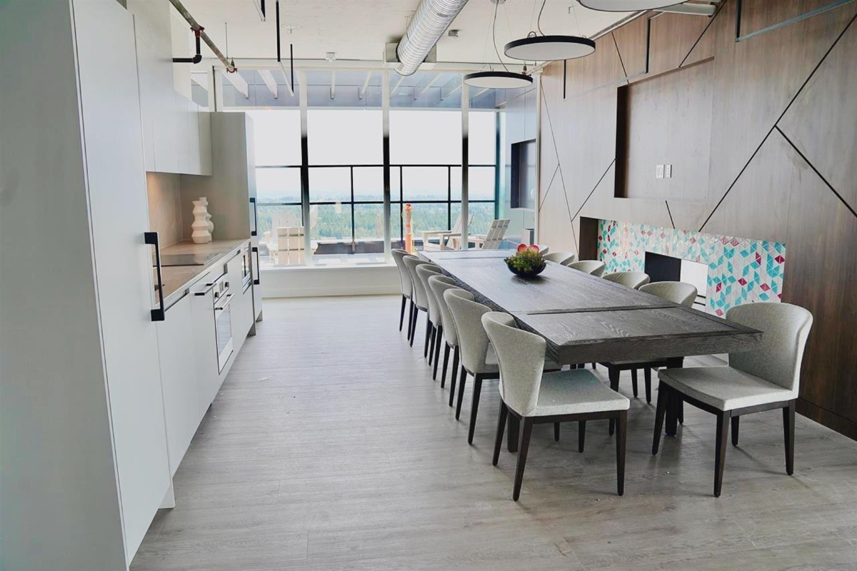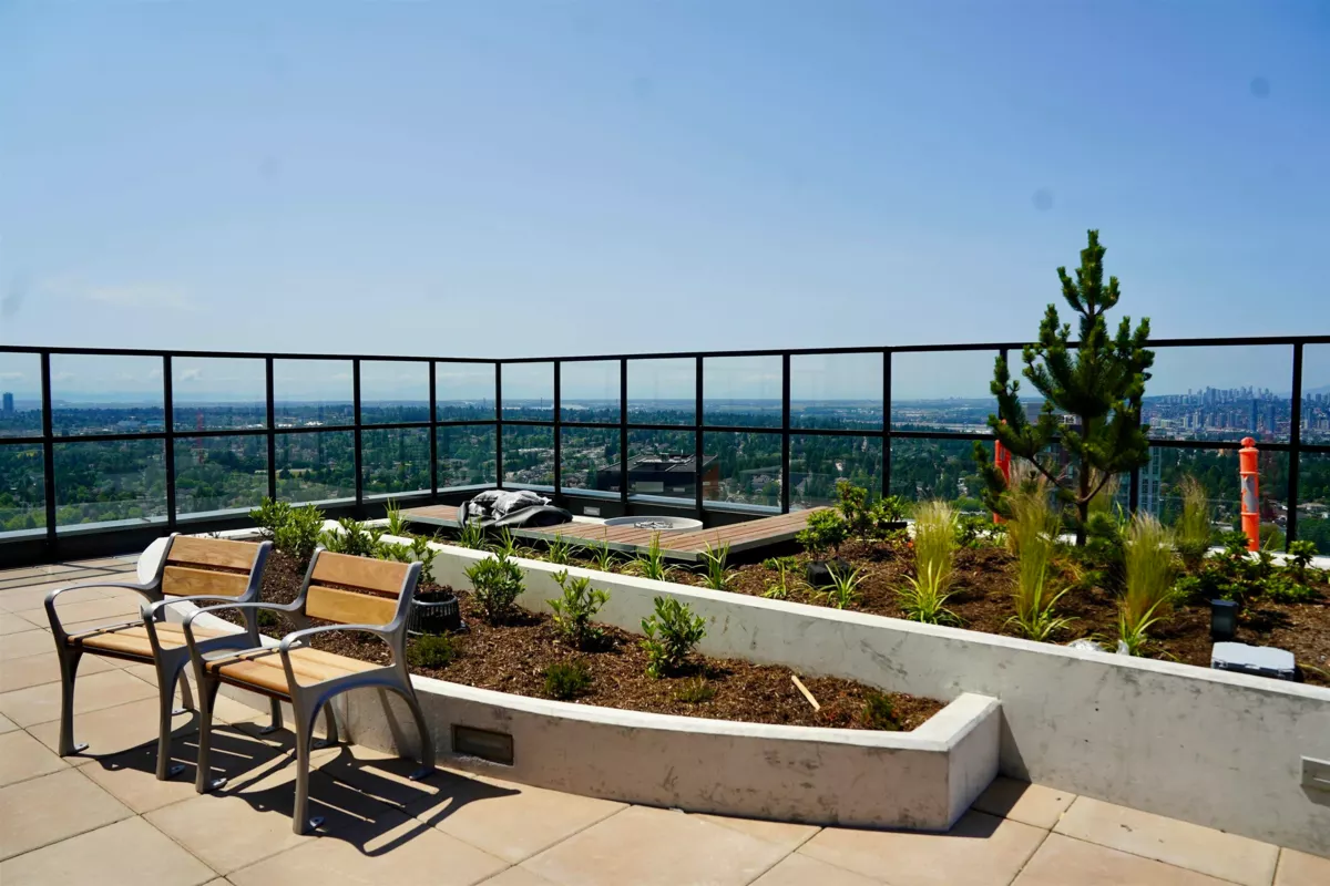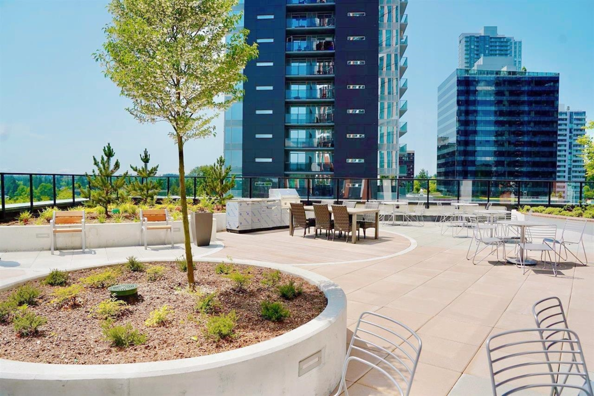 Enjoy Resort-Style Living with a Spectacular View! This stylish and comfortable 1-bedroom modem home featuring high ceilings, air conditioning, open-concept living space. Array of premium amenities :A digital fitness-friendly gym, yoga studio, and multi-purpose spaces. Indoor half basketball court. Games room, indoor and outdoor dining lounges, fire pit, and an outdoor theatre. Children's playground, shared BBQ area, and a stunning rooftop deck with social and meeting spaces. Located in a fast-growing community, offers unmatched convenience: Close to park, shopping malls, restaurants, SFU campus, Sky Train, public buses, and scenic forest trails. Whether you're looking for a beautiful home or a solid investment, this property delivers exceptional value and lifestyle convenience.