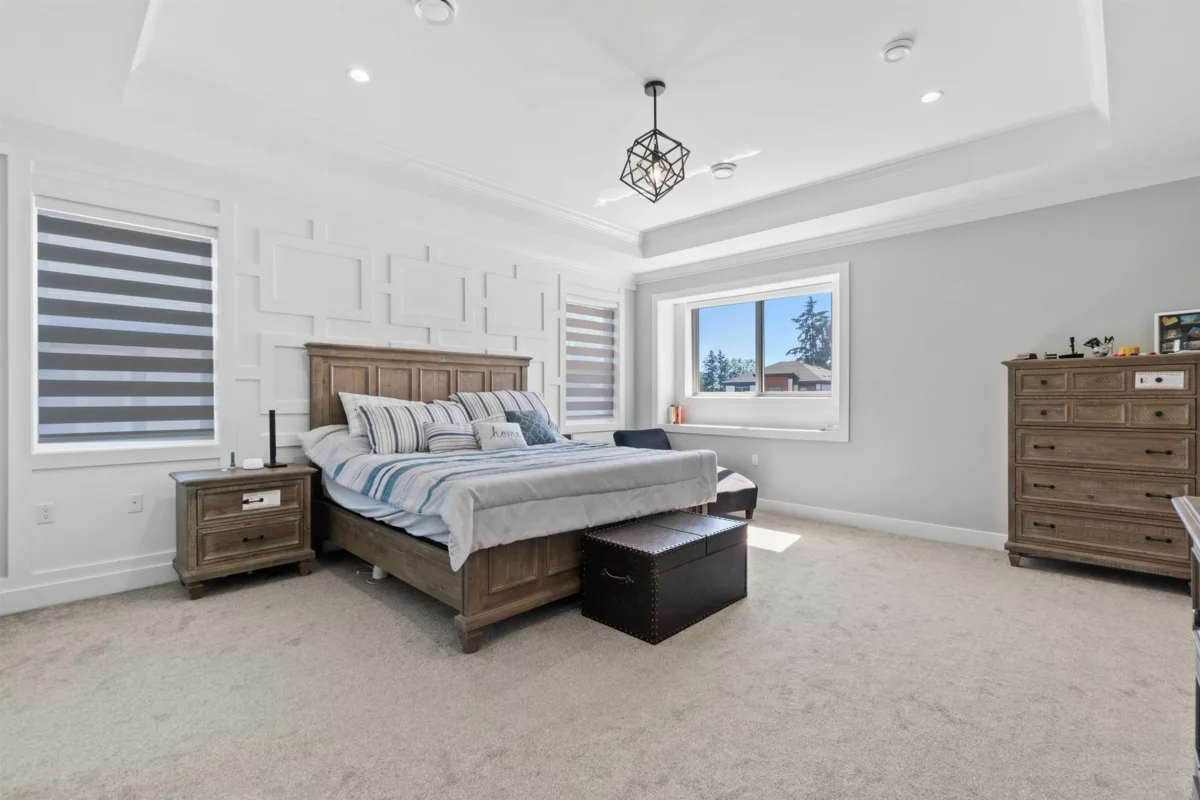 Discover this impressive Cloverdale home built in 2020, offering 9 bedrooms, 8 bathrooms, and quality finishes throughout. The main floor features a bright open layout with a den, a main floor primary bedroom with ensuite, and a spice kitchen. Upstairs includes four spacious bedrooms, including a luxurious primary suite with walk-in closet and ensuite. The lower level offers a soundproofed media room, a private owner’s bedroom, and two fully finished mortgage-helper suites (2+1). Enjoy a private backyard with a glass covered deck and gazebo, perfect for entertaining. A must-see home book your showing today!