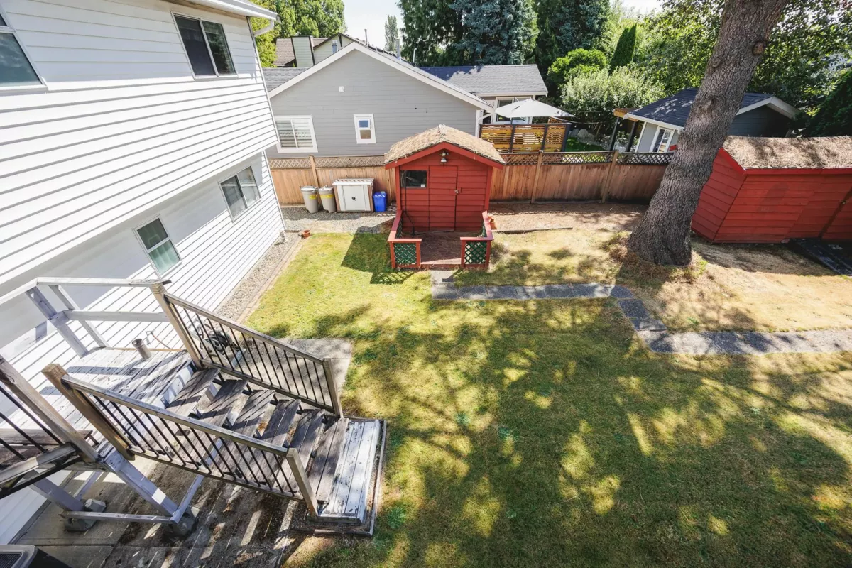 Your next family home awaits! This 2 storey home located directly across from Greenaway Park has plenty of room for the kids and pets! Enjoy your fully fenced yard with 2 storage sheds, ground level entry with 2 bedrooms & 1 bathroom downstairs and 3 bedrooms & 2 bathrooms up. Potential to add an entry level suite, or leave as is. A/C, newer appliances, & spacious bedrooms with an ensuite off the main bedroom. Plenty of storage in the kitchen, & a front row seat to baseball at the park through your living room window! Walking distance to transit, school, shops & more - come have a look!