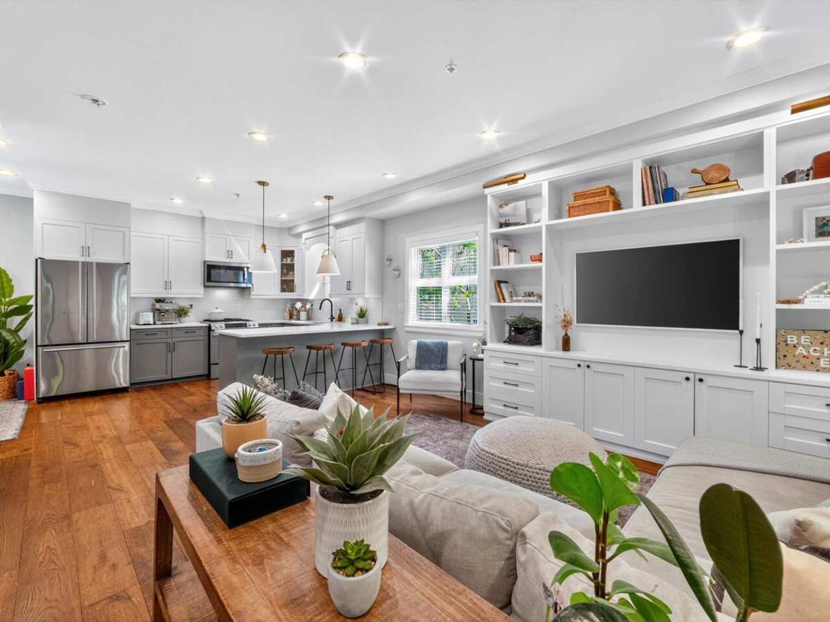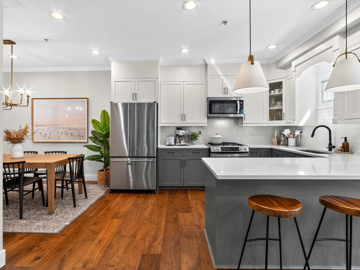 This charming and oversized South facing duplex home welcomes you the moment you enter from the sunny front porch. The large living room, house-sized kitchen and separate dining room for 6 or more, are perfect for families and entertaining. The main floor is complemented by hardwood floors, powder room and custom California Closets entertainment unit – and kept cool thanks to Air Conditioning! Upstairs are 3 great sized bedrooms all on one level plus 2 full bathrooms - the ideal family layout! The primary offers room for a king size bed, a walk in closet and custom California Closets built ins. Downstairs, you’ll find an oversized 4th bedroom with full ensuite or use it as a great family rec room, office, gym – total flexibility!