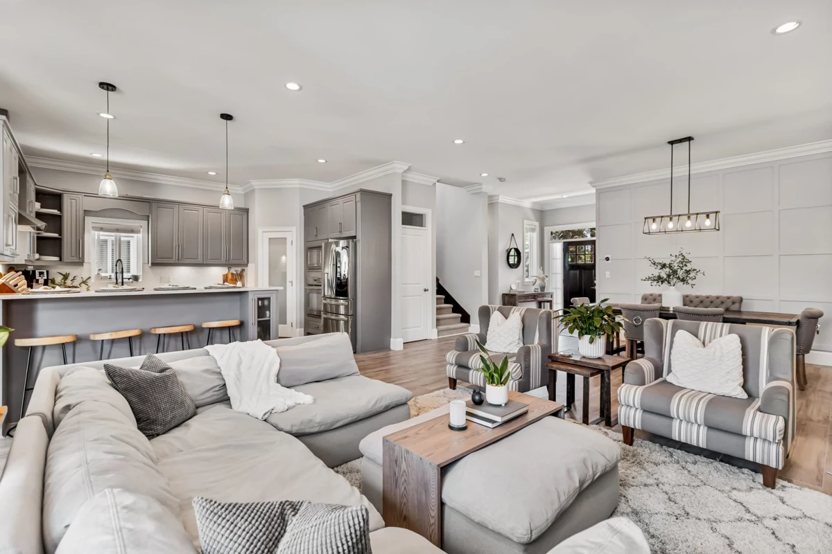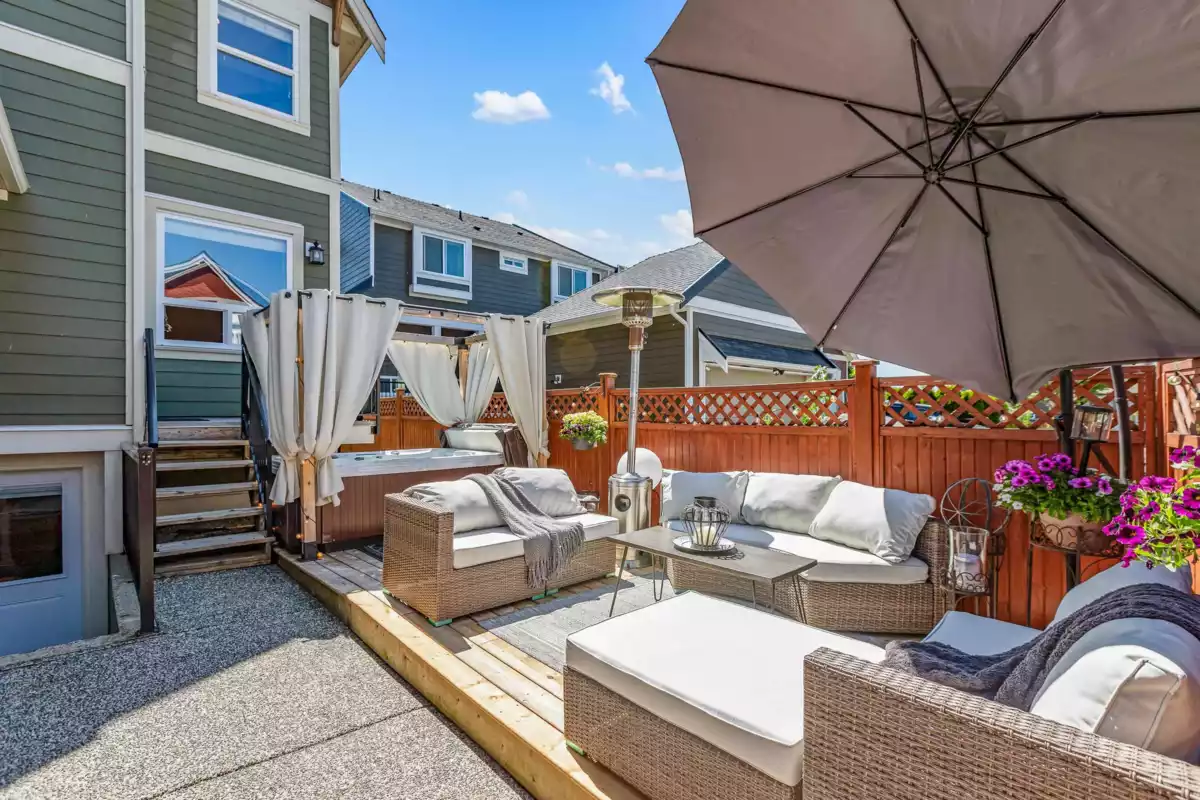 Designed for effortless multi-generational living, this home offers exceptional space and flexibility. The main floor features soaring 10-foot ceilings, a chef’s kitchen with a custom pantry, an expansive great room, and a private den. Upstairs, 3 generous bedrooms each include vaulted ceilings and ensuites,highlighted by a serene primary retreat with sitting area, walk-in closet, and spa-like ensuite. The lower level adds a large media room and a fully self-contained one-bedroom suite—perfect for in-laws, teens, or rental income. Complete with a double side-by-side garage with lane access, a sunny south-facing porch, hot tub, and low-maintenance yard, all tucked into a quiet cul-de-sac close to parks, schools, shops, and beaches. OPEN HOUSE Sunday Jan 18 1-3pm