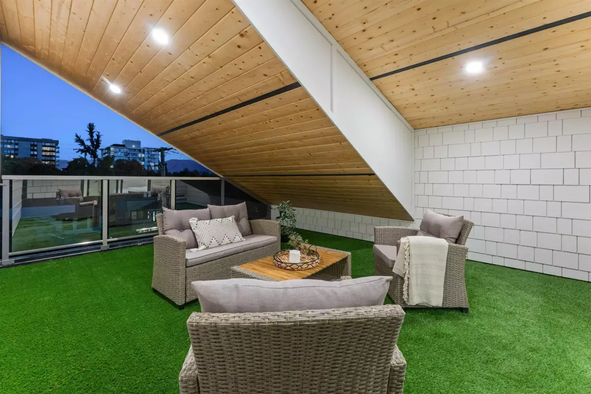 Welcome to this luxurious 4-bedroom, 4-bathroom half duplex nestled in the highly sought-after Fairview neighborhood. Thoughtfully designed with high-end finishes throughout, this home features elegant millwork, engineered hardwood flooring, and a sophisticated open-concept layout. Enjoy breathtaking city and mountain views from your expansive private rooftop patio — perfect for entertaining. Includes a fully legal 2-bedroom suite with separate entry, ideal for mortgage helper or guests. Located just minutes from downtown, and steps to top-tier shopping, dining, and amenities. This is urban living at its finest — don't miss this rare opportunity!