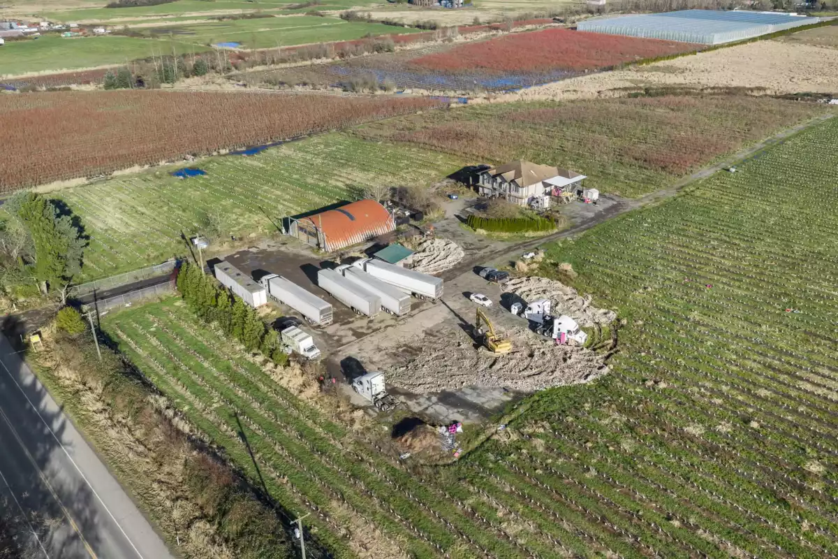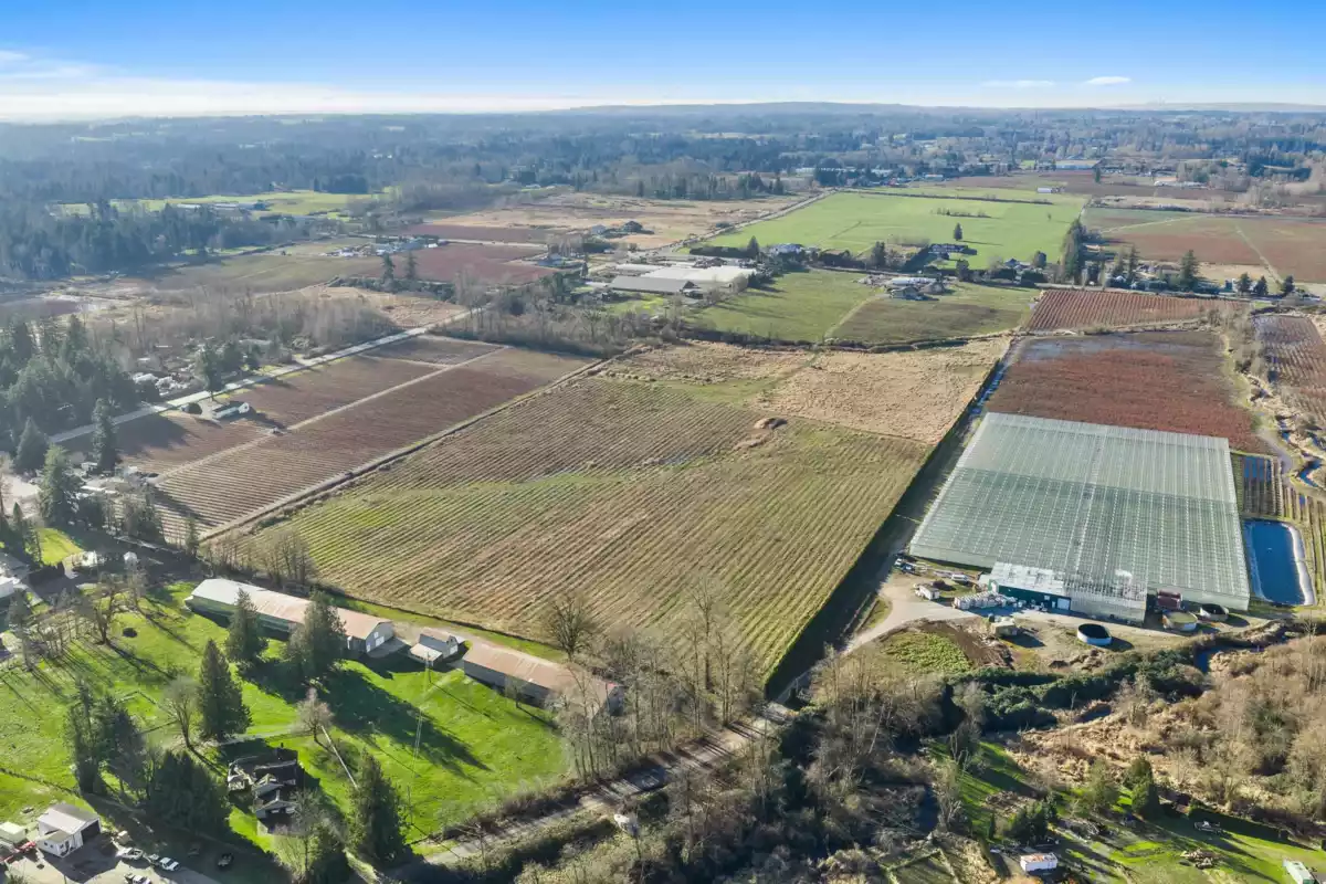 Court Ordered Sale. Estate style property centrally located with a 4,984 sq.ft. home built in 2003 on 47 acres. The residence offers 10 bedrooms and 7 bathrooms, open floor plan and and views overlooking the blueberry fields. The farm includes approximately 20 acres planted in blueberries with drip irrigation in place. Water supply from four wells. Additional improvements include a Quonset shop (approx. 40’ x 60’). Property features a frontage of 775 FT on 264 Street plus additional access off 18 Avenue (from 272 Street).