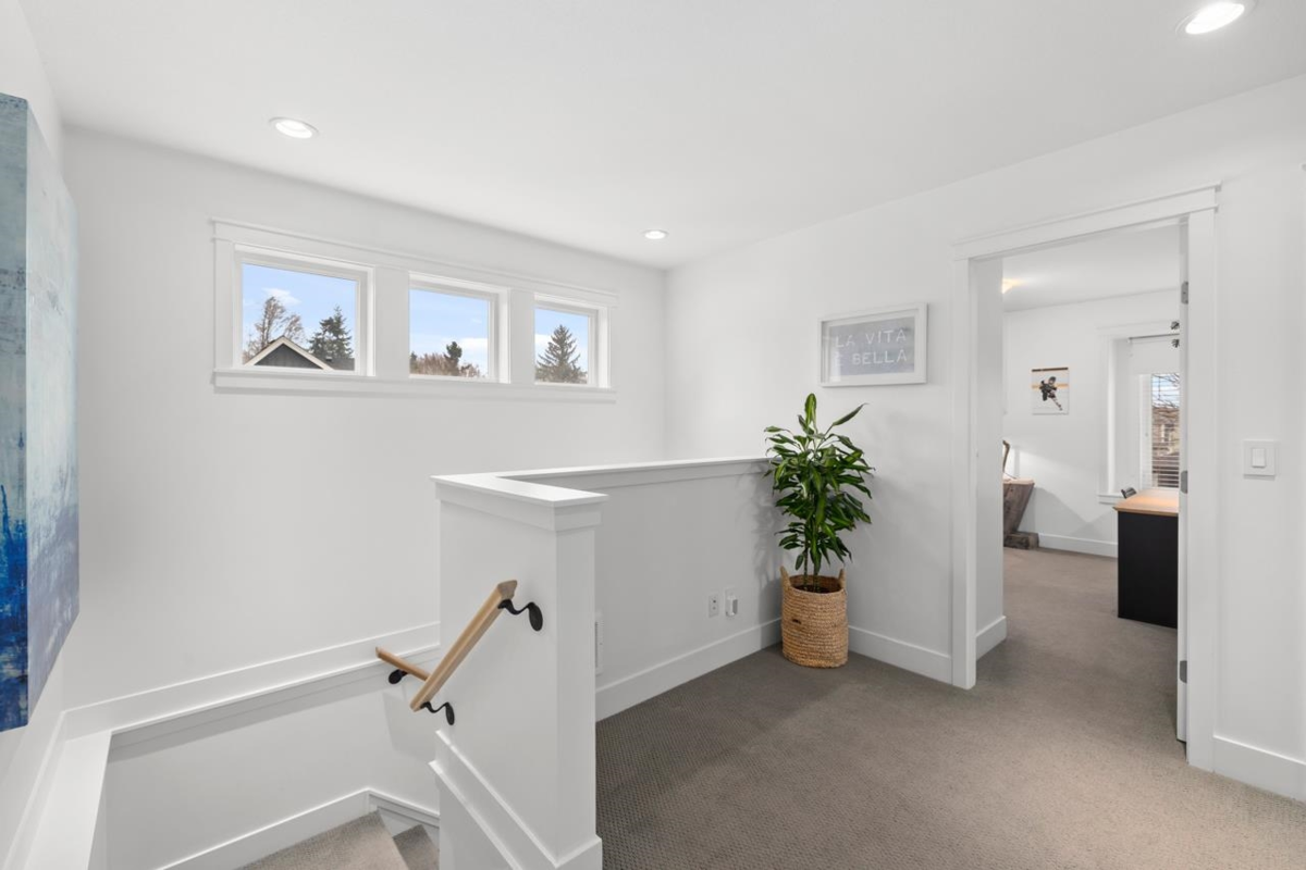 Welcome to this beautiful 2-storey home with basement on a corner lot in the heart of Summerfield. A charming front porch leads into a bright entry and open main floor with redone wide plank floors, custom built ins, and a cozy gas fireplace. The white kitchen features a large island, granite counters, stainless steel appliances, and wine fridge perfect for everyday living and entertaining. Upstairs offers spacious bedrooms, including a calm primary suite with spa like ensuite and walk in closet. The basement provides flexible space for a gym, playroom, or guests. Enjoy a fenced yard with deck and detached garage with lane access, ideal for safe kids' street games and family fun. Air conditioning, tankless hot water, updated trim and crown mouldings, and fresh interior and exterior paint.