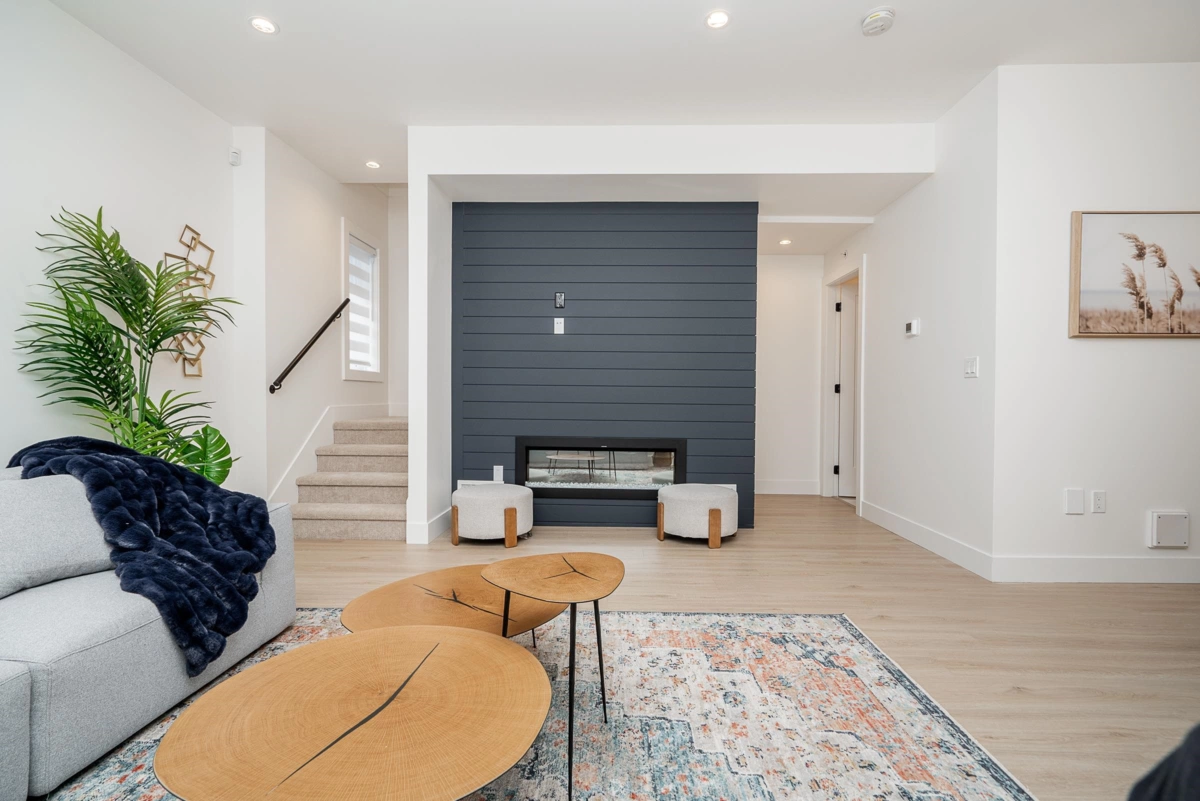 Welcome to Willow Heights by Apna Group! Nestled in a prime central location, just minutes from Willoughby Town Centre and Willowbrook Mall, this stunning new 3-story home sits on a peaceful street. Offering 4 bedrooms + flex space, it boasts 9' ceilings, a built-in fireplace, and a full bathroom on the ground level. Enjoy modern comforts like hot water on demand and forced air gas heating, along with a full-size side-by-side laundry set with built-in cabinetry. The primary suite is a true retreat, featuring a luxurious ensuite with a frameless glass shower and a freestanding tub. The LG appliance package includes a gas range, French door fridge, and built-in microwave. Show home open daily from 12–5 PM closed Thurs. & Fri.