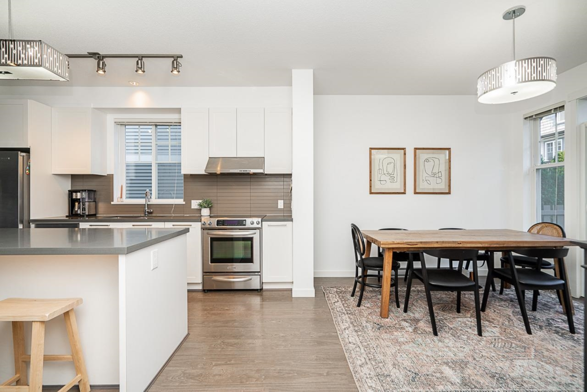 Rarely do such opportunities arise! This stunning South-facing END-UNIT townhome in Bridlewood by Polygon on BURKE MOUNTAIN is now available. Situated in one of the area's most sought-after developments, this freshly painted home boasts an open-concept layout with 3 bedrooms, 3 bathrooms, and craftsman-style architecture. The main level showcases a gourmet kitchen with S/S appliances and a central island, a spacious dining area with walk-out access to a private fenced yard through double French doors, a front living room, and a convenient powder room. Upstairs, you'll find 3 bedrooms, 2 full bathrooms, and a laundry area. The master bedroom features a luxurious en-suite and stunning mountain views. Completing this exceptional property is a double car tandem garage. Unbeatable location!