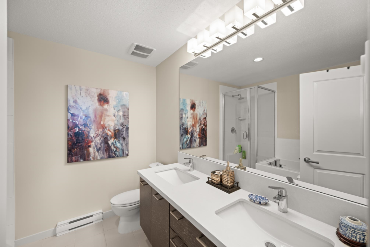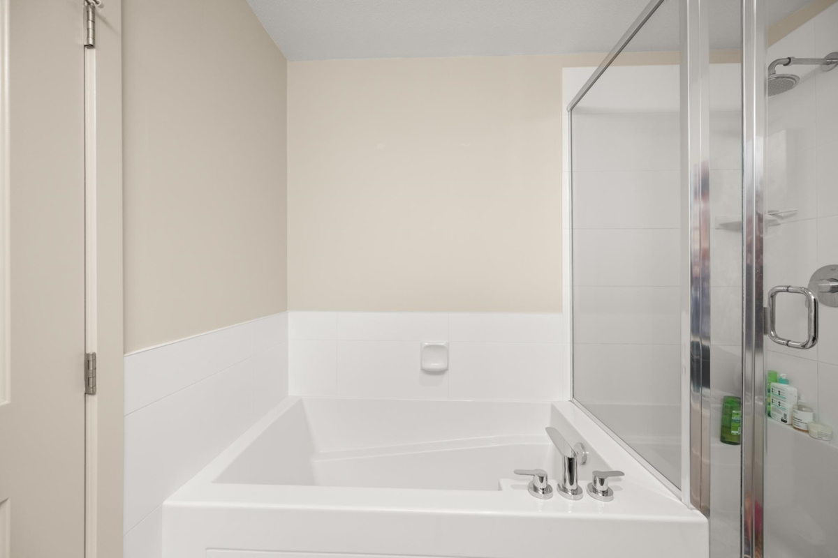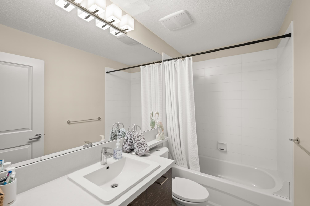 Fenced-in grassed yard off main floor! Stunning END-unit townhome by Polygon in Bridlewood, located in desirable Burke Mountain! Updated foyer with hard surface floors on the stairs. Fresh paint, new window coverings throughout and updated fixtures. The main floor features a beautiful kitchen with quartz counters, SS appliances, and an oversized island—perfect for entertaining. Beautiful French doors off the dining area lead to your private, fully-fenced backyard, while a cozy living room at the front offers a relaxing retreat. Upstairs offers 3 bedrooms, 2 full baths, & laundry. Spacious primary bedroom is a highlight, complete with a spa-like ensuite and incredible mountain views. A rare opportunity in a highly sought-after location! Elementary school across street.