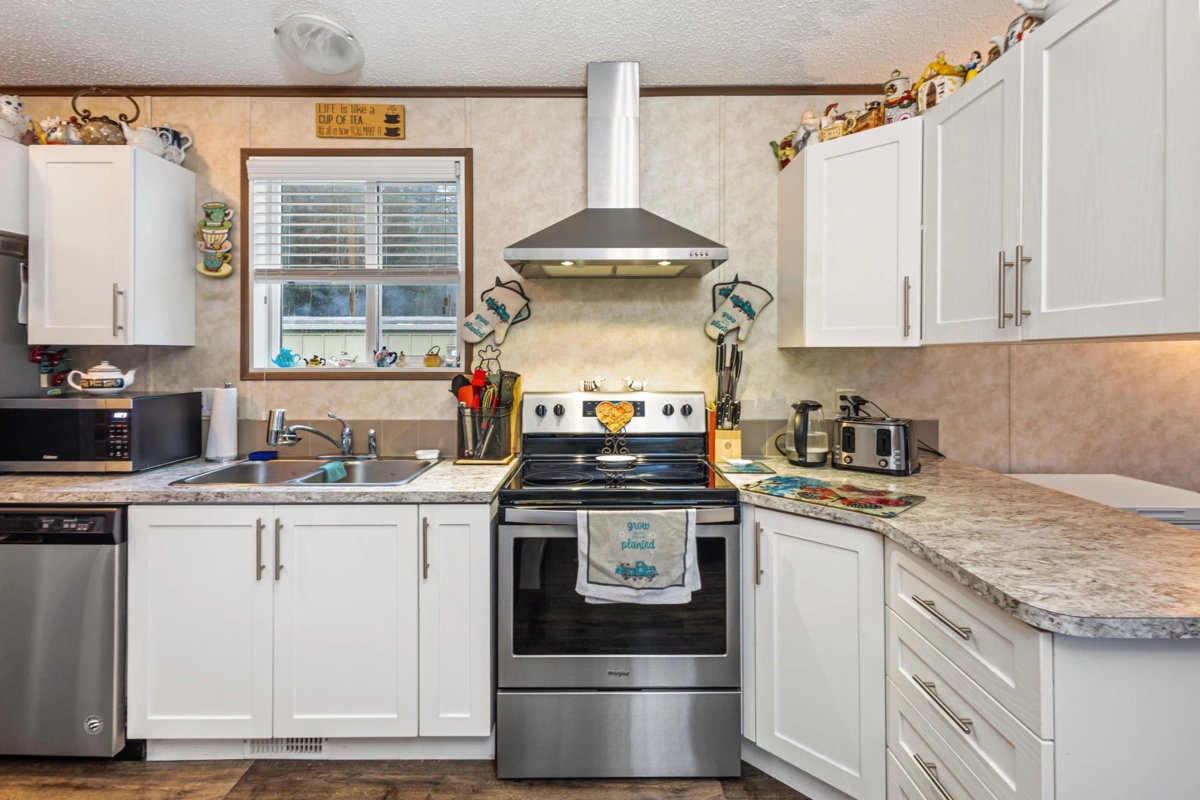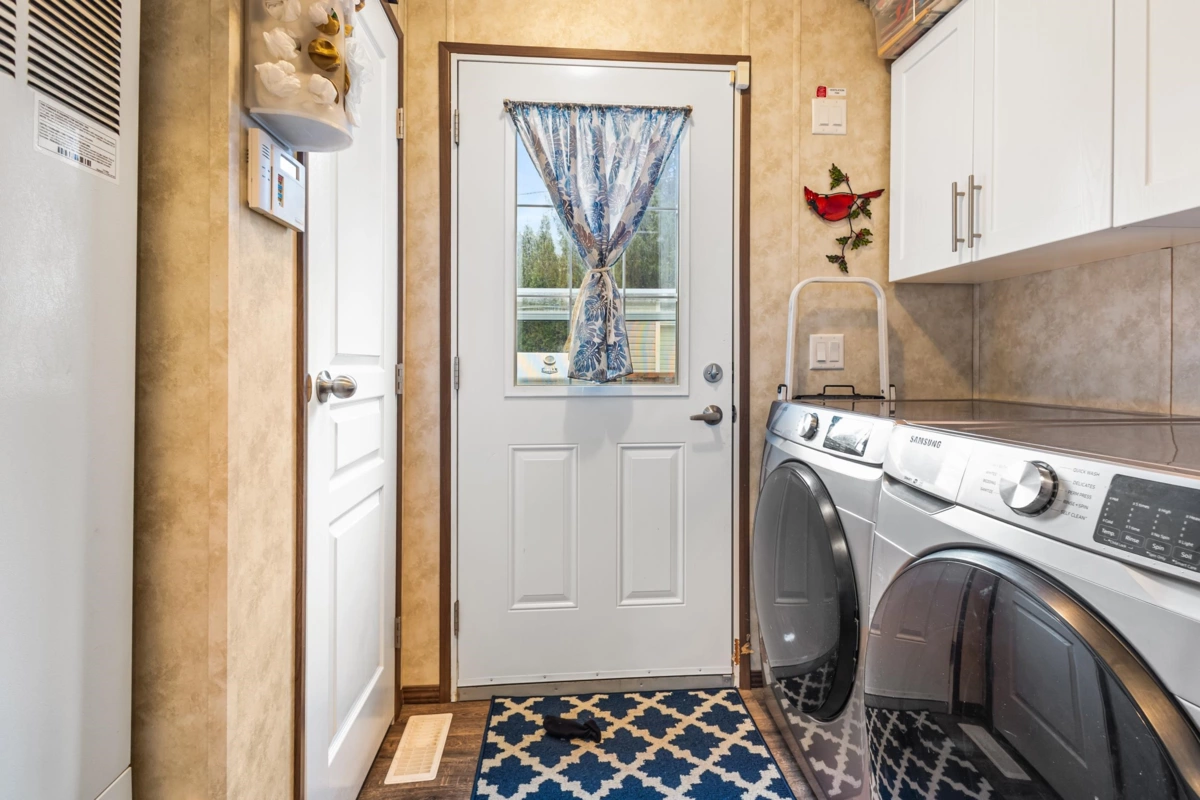 Welcome to Cultus Lake Village, a 45+ community offering peace, privacy, and an unbeatable location just minutes from the lake. This 2019-built 2-bedroom, 2-bath manufactured home features a bright, open layout, modern finishes, and a well-designed kitchen The primary bedroom includes a private ensuite, plus an additional full bathroom for convenience. Enjoy in-suite laundry, high-efficiency systems, and low-maintenance living. Large windows bring in natural light, and a private deck and manageable yard provide outdoor enjoyment. Parking is right at your door, pets allowed. Close to golf, hiking, dining, and lake activities, move-in ready and waiting for you!