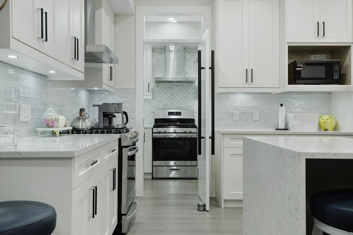 Stunning custom built house in East Abbotsford! Pride of ownership shows here! 6 Bedroom & 5 Bathroom home boasting over 3,500 sq ft of living space. High end finishing and attention to detail throughout. Main floor boasts a white shaker style kitchen with quartz countertops, waterfall island, SS appliances and spice kitchen. Spacious open concept living and dining room with access to sliding doors that take you out to the covered patio with glass railings overlooking the serene backyard. Upstairs features a primary bedroom with spa like ensuite bathroom featuring dual sinks & frameless shower, 3 other bedrooms with vaulted ceilings, and the laundry room. Basement offers separate flex or rec room space for upper level use and 2 bedroom legal suite. AC, turf yard, cedar soffits, & more!