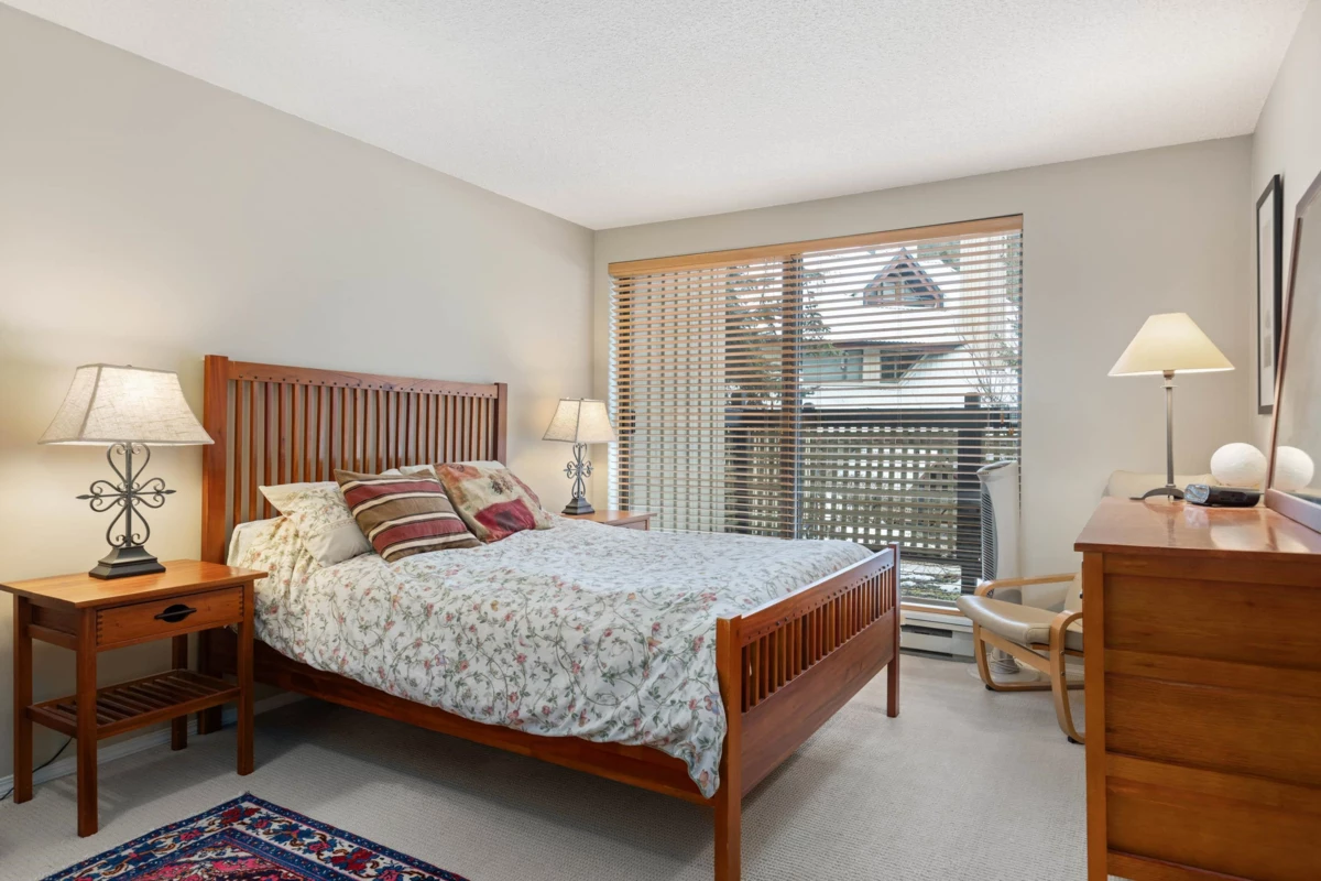 Welcome to Unit 18 at Snowberry, a stunning ground floor 2-bed, 2-bath townhome in the sought after Benchlands. Enjoy a fully renovated kitchen with quartz countertops, stainless steel appliances, and a spacious island, along with beautifully updated bathrooms. The open layout flows into a cozy living room with a wood burning fireplace and large windows. Dutch hardwood floors, two sunny patios, in-suite laundry, and secure underground parking make mountain living easy. This Phase 1 townhome allows unlimited personal use and nightly rentals. Just steps from ski lifts, the Fairmont Chateau Golf Course, Lost Lake trails, and the free shuttle.