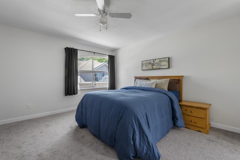 Bright & inviting 3BR 3BTH Queen Mary Park end unit. Contemporary laminate flooring illuminated by oversized windows welcome you into this 1,600 SQFT residence that feels like a detached. The expansive living room invites relaxation beneath airy, vaulted ceilings overlooking a sprawling, fenced backyard w/ generous wooden deck. Your inner chef will adore the clean, white kitchen boasting sleek, stainless steel appliances & crisp, quartz counters surrounded by ample cabinetry. Laundry is conveniently found alongside tranquil bedrooms: one w/ bonus storage & a primary bed offering.‘his & hers’ closets & a skylight-lit ensuite. Your pet-friendly Lakewood Grove home w/ side x side garage is near major routes, steps to Kennedy Trail Elem & numerous restaurants, shops & grocery along Scott Road.