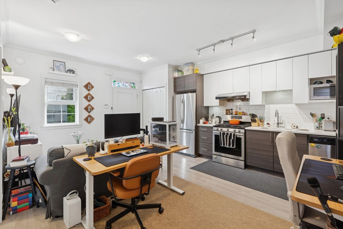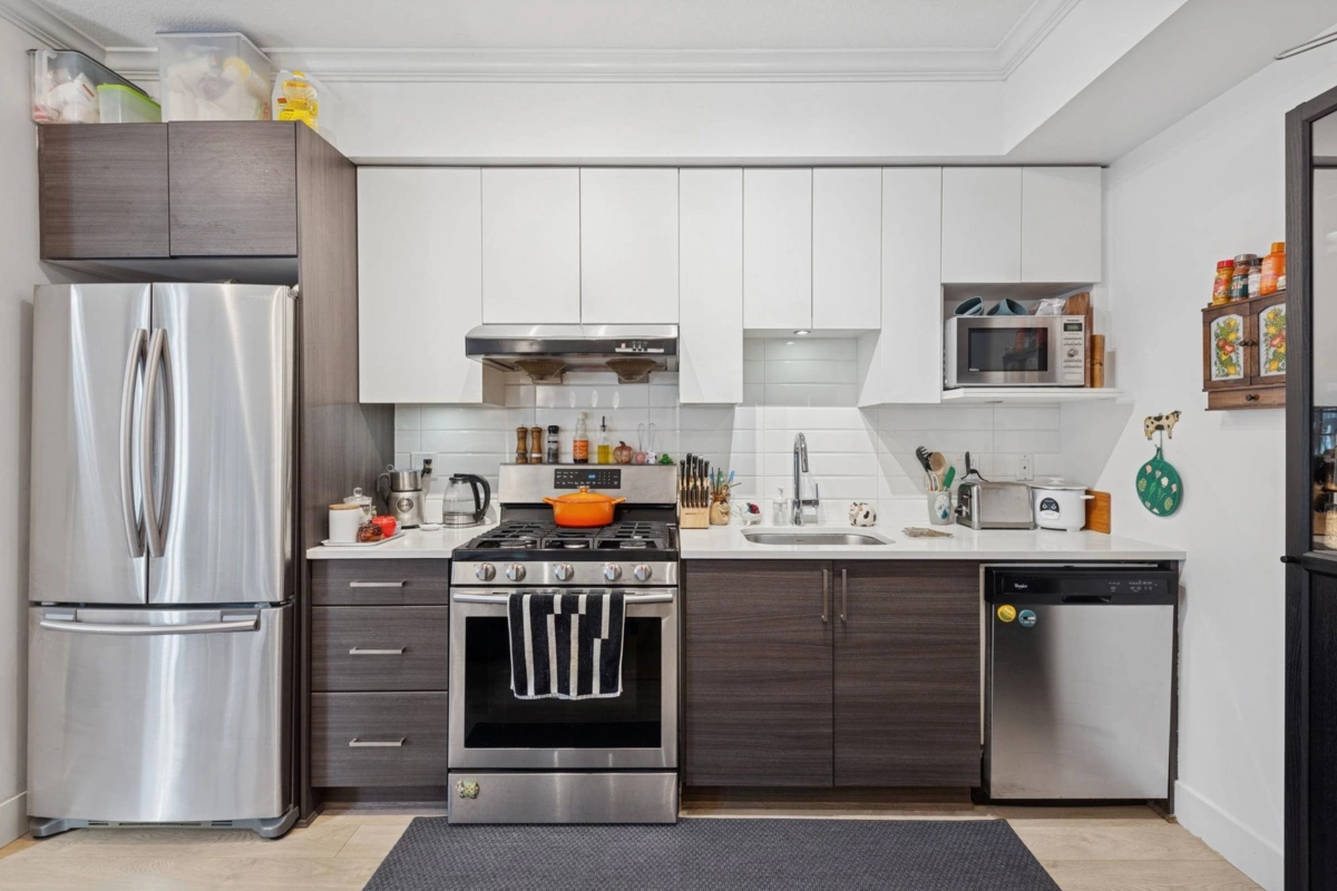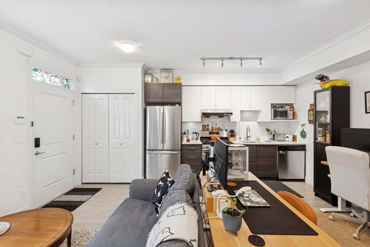 A rare single-level garden suite offering privacy/comfort & exceptional value in one of Richmond’s most family-oriented neighborhoods. This well-designed 485 sf home features direct outdoor access & a generous 141 sf private patio—perfect for morning coffee/pets/quiet evenings at home. Enjoy radiant in-floor heating for year-round comfort/ 9’ ceilings/laminate flooring throughout/in-suite laundry & a thoughtfully equipped kitchen with quartz countertops, stainless steel appliances, gas stove & full-size fridge. A 2024 HWT adds peace of mind. Steps to 20-acre Garden City Park/Anderson Elem./ MacNeill Sec. w/ quick access to Richmond Centre/Lansdowne Mall/Kwantlen University/shopping & dining. LOW STRATA FEES make this a smart step for 1st time home buyers / a comfortable downsizing option.