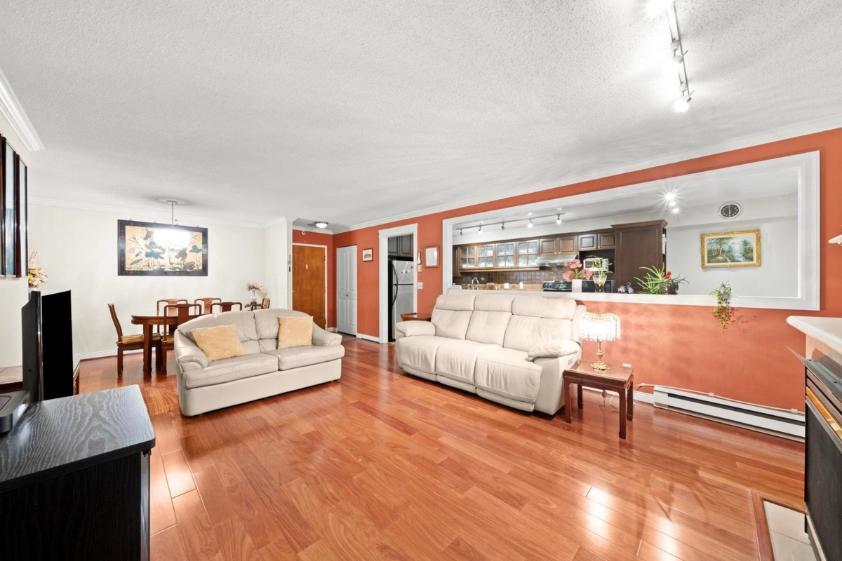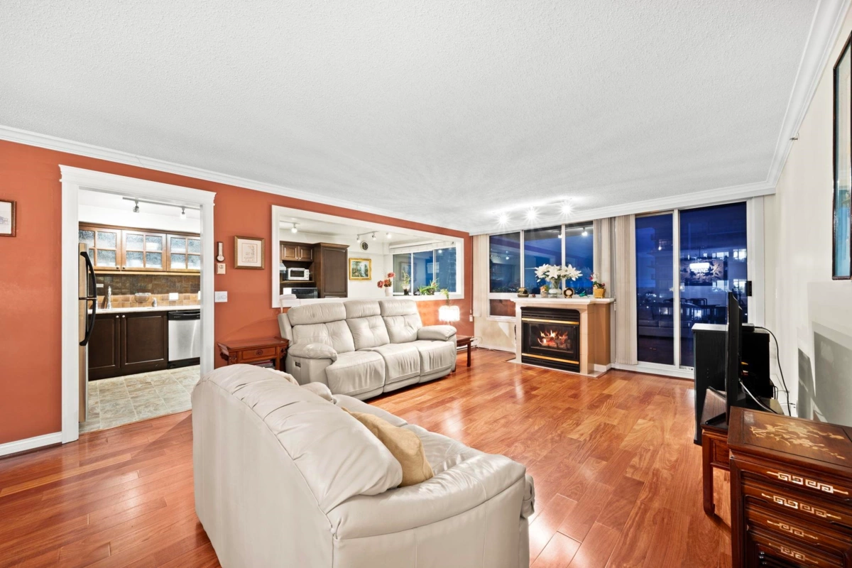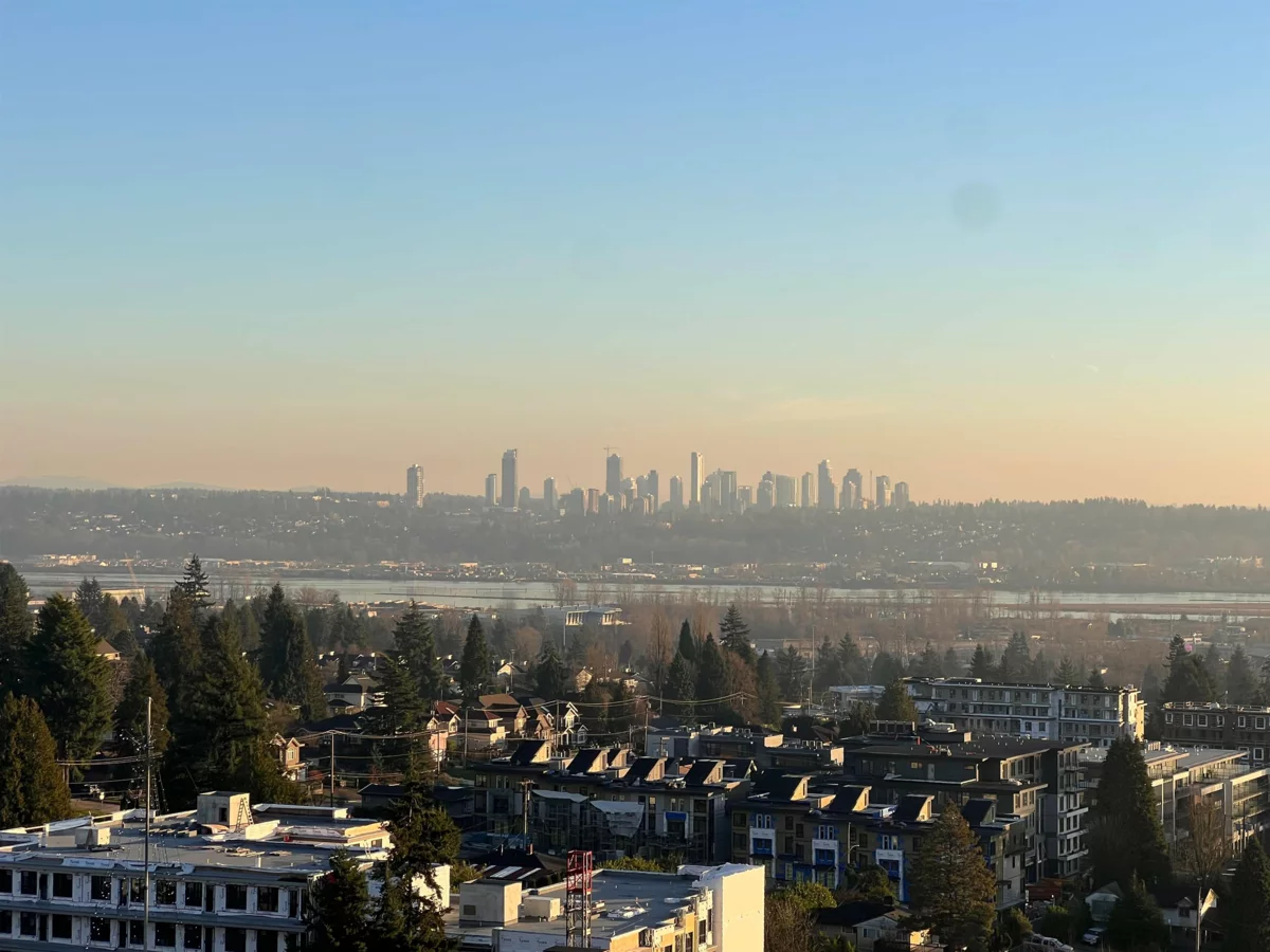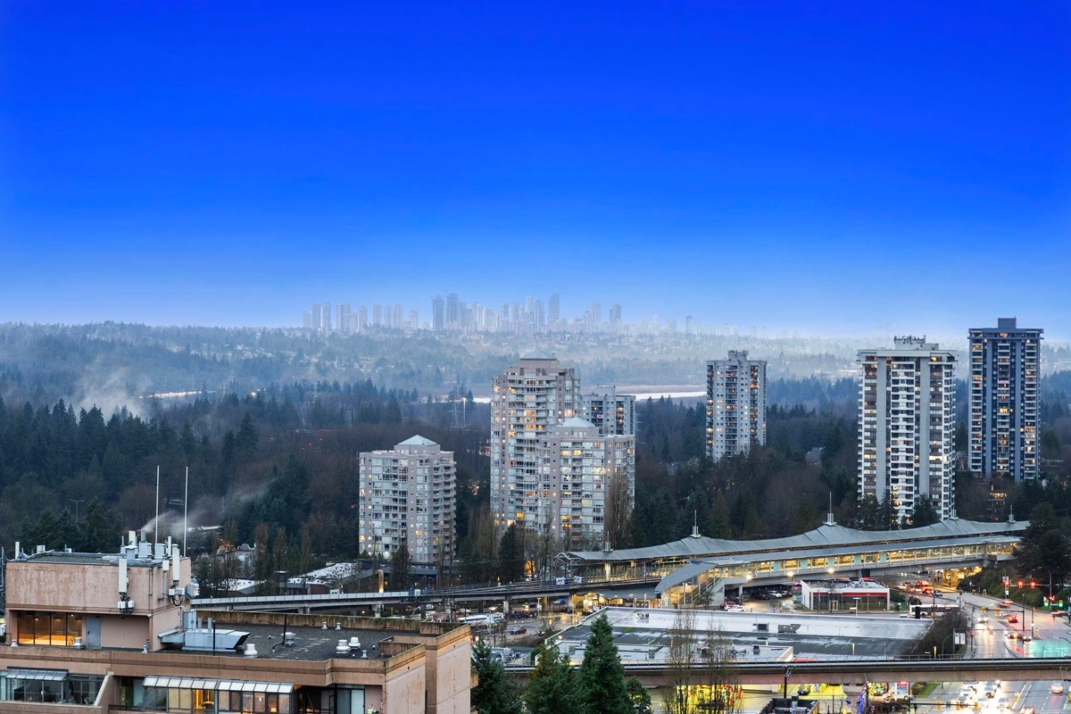 Wake up to sweeping southern views of the Fraser River, city skyline, and beyond in this updated, spacious 2-bedroom, 2 full bath home offering 1,228 sq ft designed for comfortable, house-sized furniture. The living room features a wall opened to the kitchen creating a more open plan. Thoughtful layout with bedrooms separated for privacy, a cozy gas fireplace, and a bright kitchen featuring a pantry and eating nook. Enjoy sunsets year-round on the huge 21’ x 6’ covered balcony. Outstanding location, just steps to The City of Lougheed Shopping Centre, SkyTrain, shops, Van Golf Club, & parks. Includes 1 prkg & 1 lkr. Brookmere Towers is a well-managed, popular complex w/ indoor pool, sauna, & gym. A rare combination of space, views, and convenience. Open House Sunday Feb 1st 2:00-4:00pm