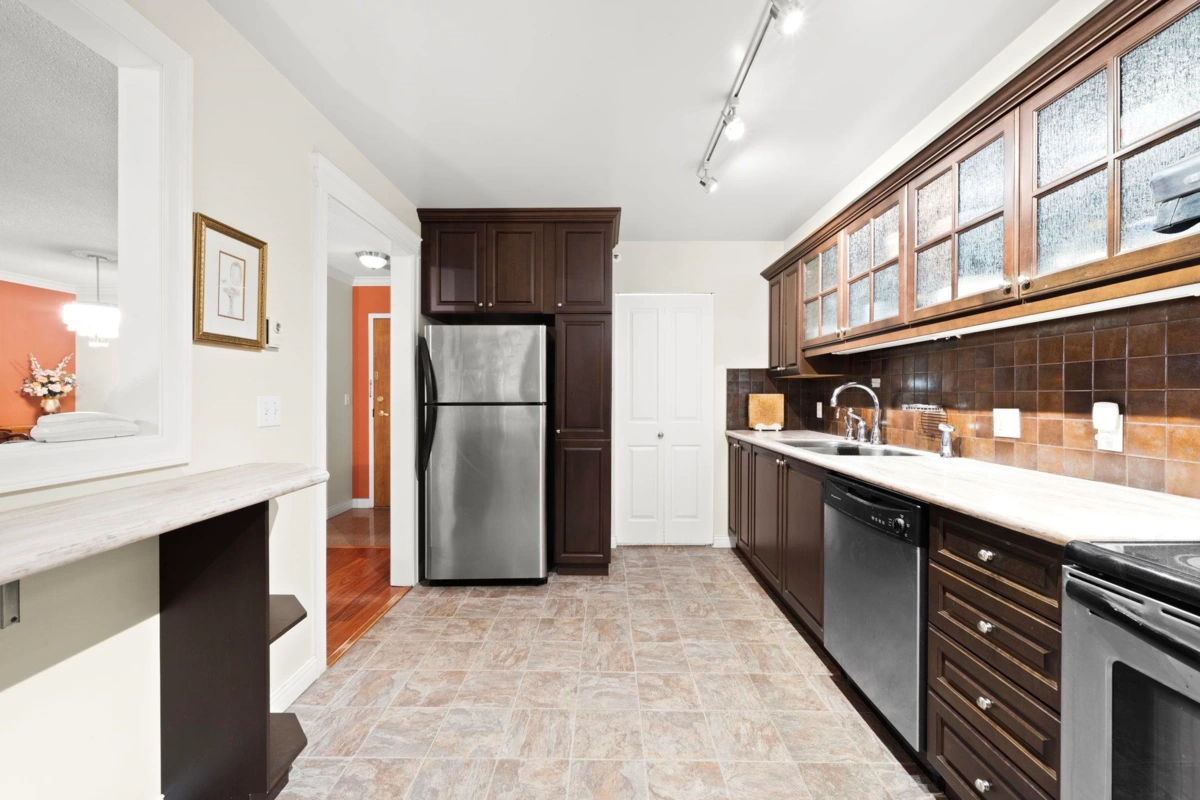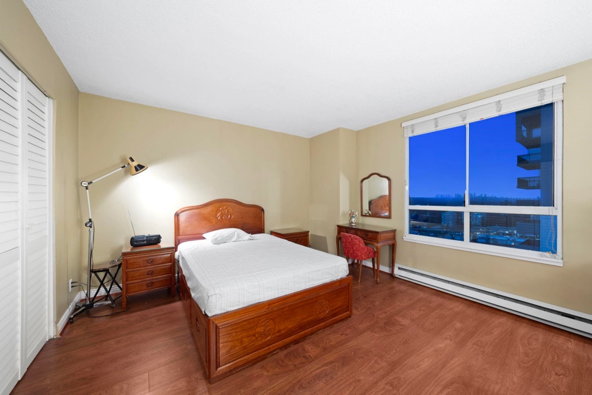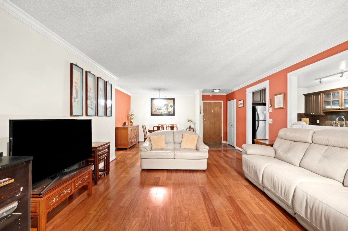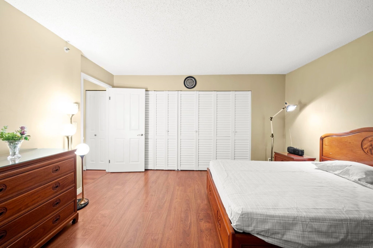 Wake up to sweeping southern views of the Fraser River, city skyline, and beyond in this updated, spacious 2-bedroom, 2 full bath home offering 1,228 sq ft designed for comfortable, house-sized furniture. The living room features a wall opened to the kitchen creating a more open plan. Thoughtful layout with bedrooms separated for privacy, a cozy gas fireplace, and a bright kitchen featuring a pantry and eating nook. Enjoy sunsets year-round on the huge 21’ x 6’ covered balcony. Outstanding location, just steps to The City of Lougheed Shopping Centre, SkyTrain, shops, Van Golf Club, & parks. Includes 1 prkg & 1 lkr. Brookmere Towers is a well-managed, popular complex w/ indoor pool, sauna, & gym. A rare combination of space, views, and convenience. Open House Sunday Feb 1st 2:00-4:00pm