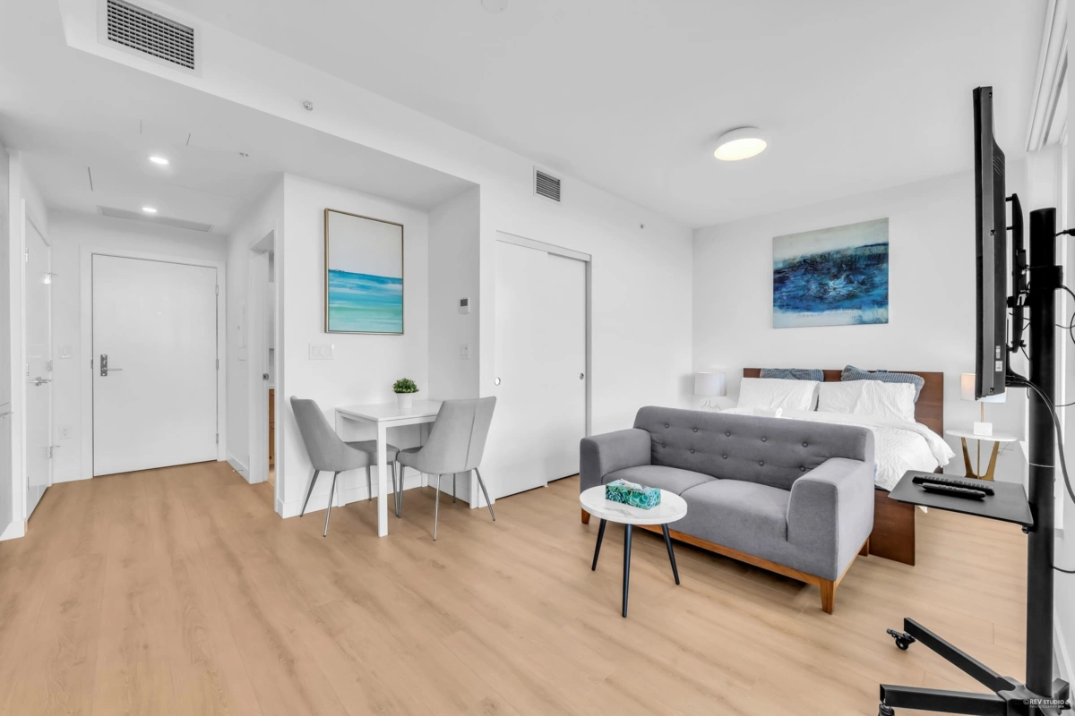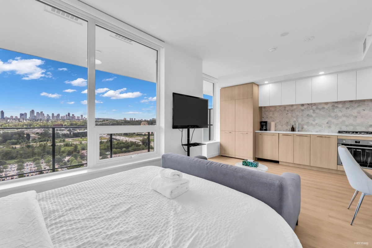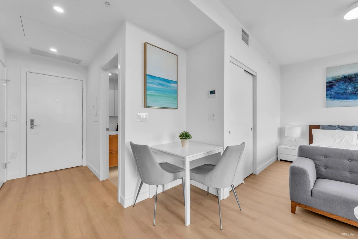 This bright studio features an efficient layout with 9' ceilings and energy-efficient heating/cooling. The building offers great amenities, including a fitness center, yoga studio, lounge, and outdoor BBQ area. Perfectly located near Brentwood Mall, Skytrain, shopping, and dining—plus easy access to Costco, BCIT, and SFU. Includes one parking spot and a storage locker for added convenience.