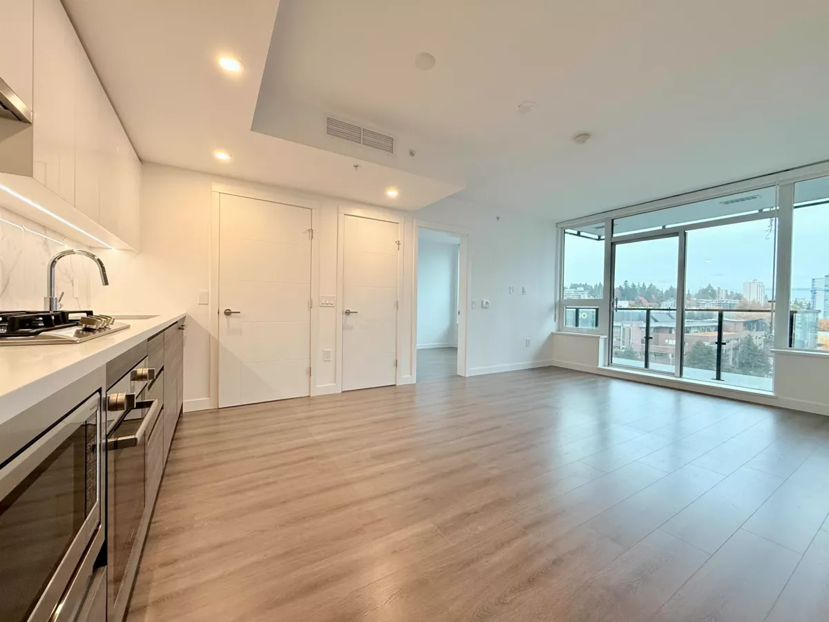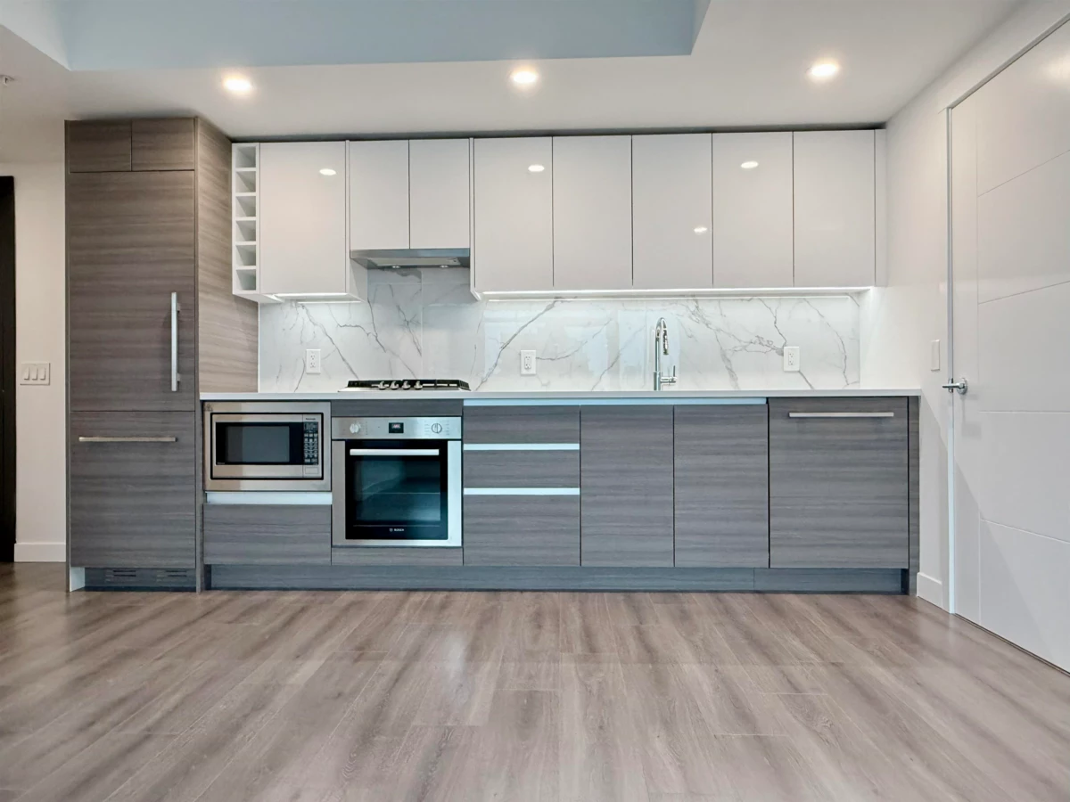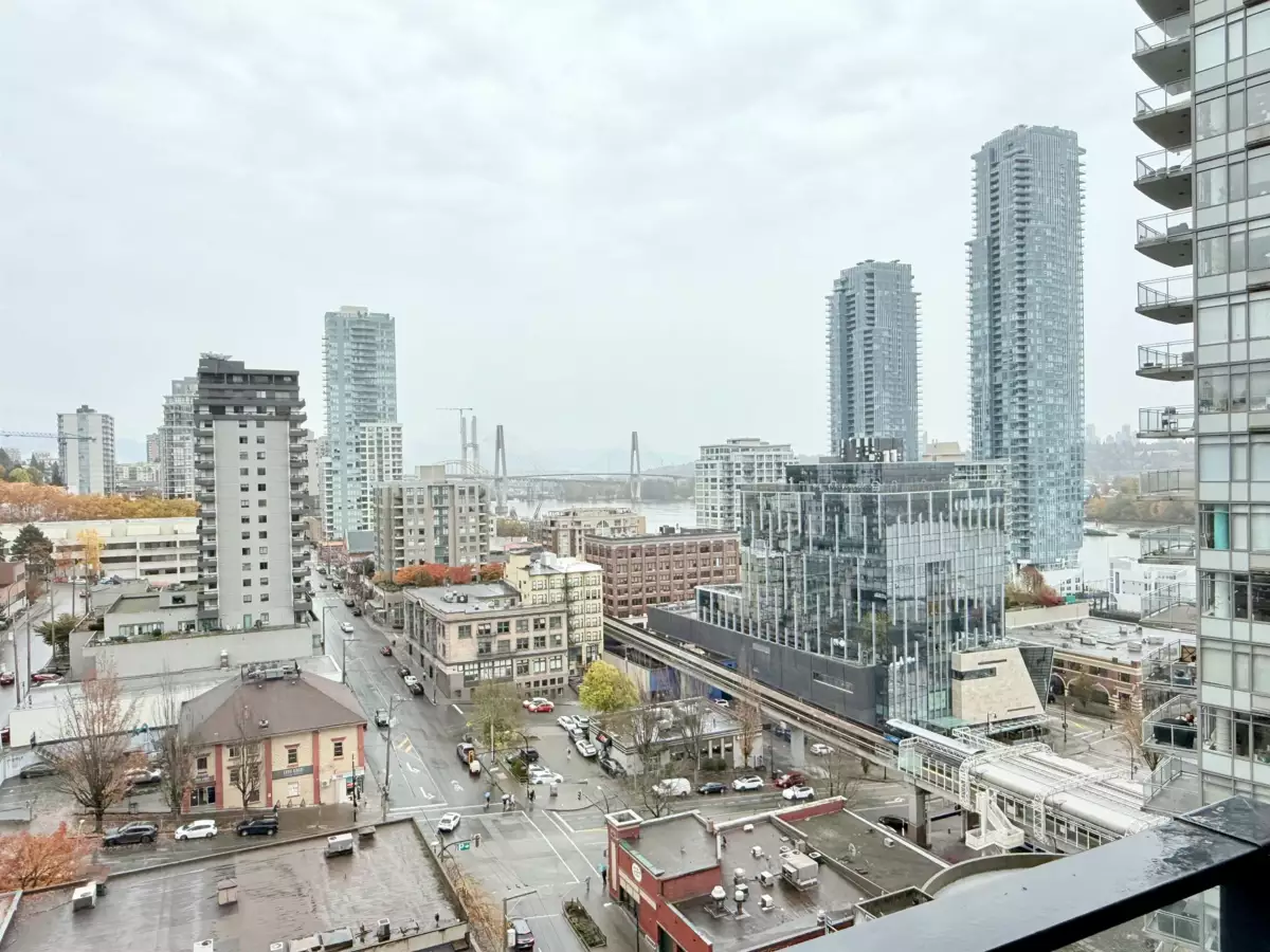 Ovation located at the downtown of NewWest right across from the New Westminster Skytrain station. This 1 bed 1 bath air conditioned unit has an open and functional layout. Features wide-plank laminate flooring, floor-to ceiling windows with roller shades & in-suite laundry. Quartz countertops, porcelain backsplash, under-mount stainless steel sink, integrated Blomberg fridge & Bosh Dishwasher, a gas cooktop, and Bosh convection wall oven. Quartz countertops & porcelain tiling in bathroom. Northeast facing with Fraser River view and city of DT NewWest. Amenities include concierge, top floor clubhouse with a deck and BBQ, fire pit & lounge seating, exercise centre, outdoor hot tub, multi-purpose room &much more. Groceries, shops, cafe and restaurants all just steps away.