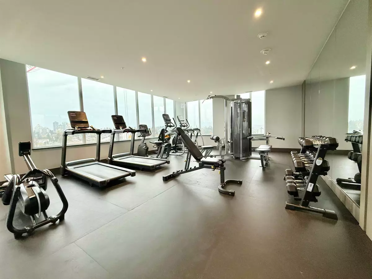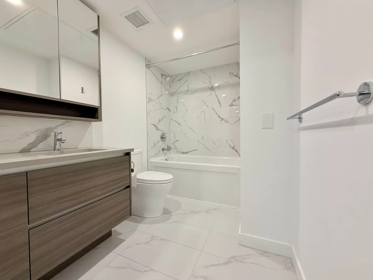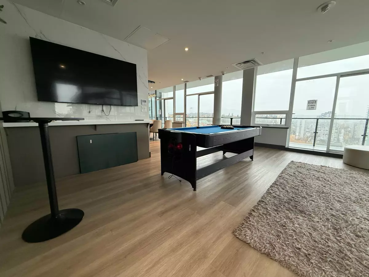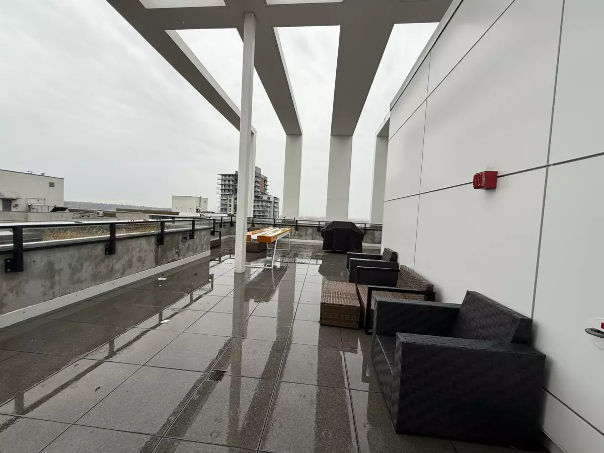 Ovation located at the downtown of NewWest right across from the New Westminster Skytrain station. This 1 bed 1 bath air conditioned unit has an open and functional layout. Features wide-plank laminate flooring, floor-to ceiling windows with roller shades & in-suite laundry. Quartz countertops, porcelain backsplash, under-mount stainless steel sink, integrated Blomberg fridge & Bosh Dishwasher, a gas cooktop, and Bosh convection wall oven. Quartz countertops & porcelain tiling in bathroom. Northeast facing with Fraser River view and city of DT NewWest. Amenities include concierge, top floor clubhouse with a deck and BBQ, fire pit & lounge seating, exercise centre, outdoor hot tub, multi-purpose room &much more. Groceries, shops, cafe and restaurants all just steps away.