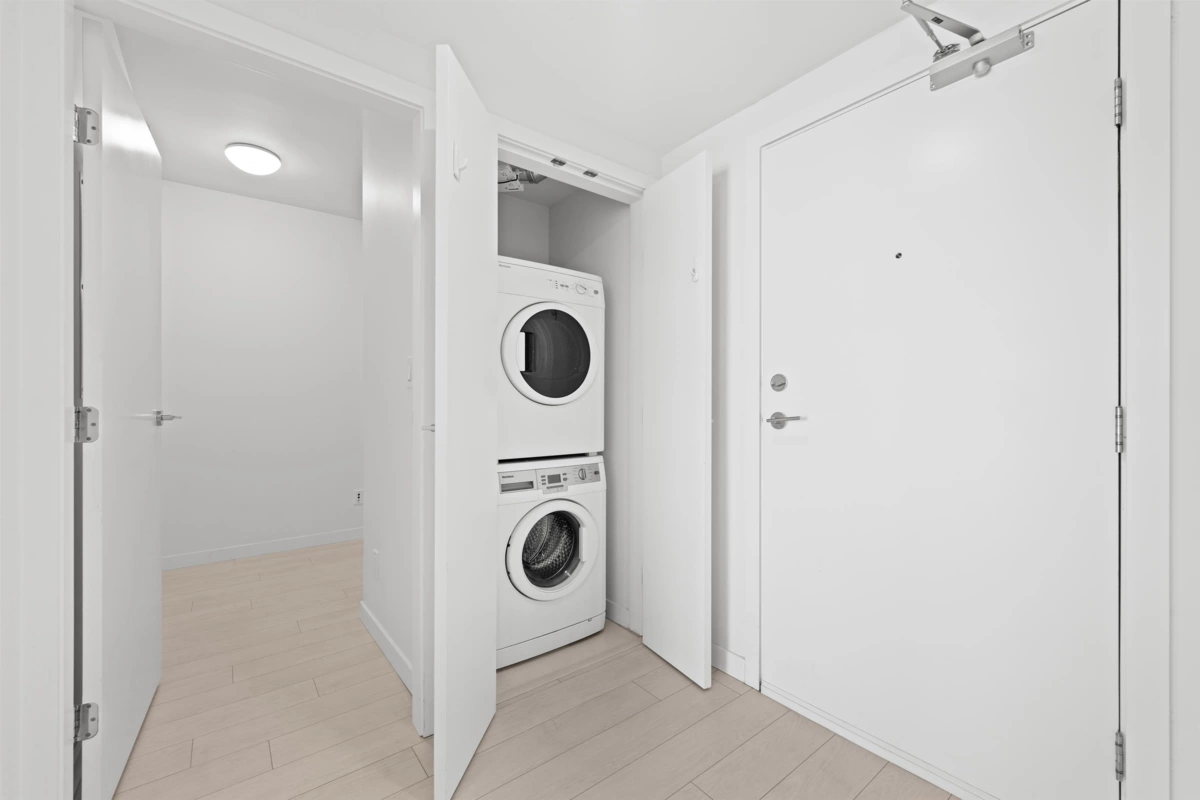 Discover breathtaking views & lively urban living in this 1 bed suite with walk in closet & den, nestled in one of Vancouver’s most accessible & vibrant neighborhoods. Steps away from shops, renowned restaurants, & major transit lines, including the Broadway Skytrain stn, this home perfectly marries style with functionality. Inside, you’ll appreciate details such as custom millwork wardrobes in the bedroom and closet, sleek laminate flooring, and contemporary kitchen adorned with Italian cabinetry, stainless steel appliances, and an induction cooktop. Outside your door, you’ll find beautifully landscaped green spaces & indoor amenities suited for relaxation, entertaining, or remote work. Experience the buzz of Mt Pleasant's most sought-after community.