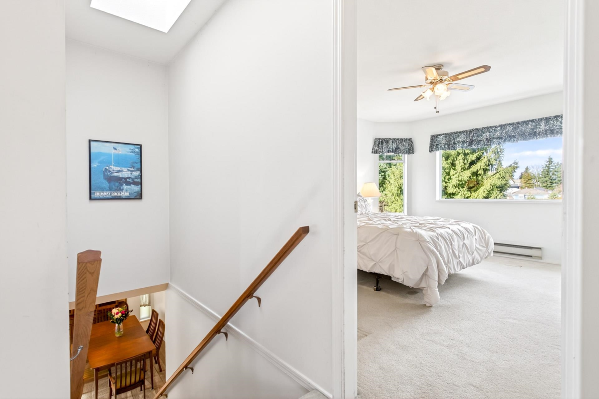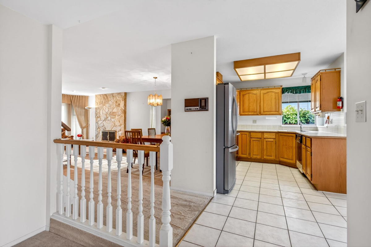 Lovely family home, cherished by its original owners, offering beautiful mountain views. On a glorious 7315 SQ FT LOT. The open kitchen flows seamlessly into a bright bay window eating area. Spacious formal living & dining rooms. A sunken family room adds character & comfort, with direct access to a generous 21x16 covered deck; ideal for year round enjoyment. The third floor features three sizeable bedrooms, enhanced by two skylights that flood the space with natural light. The spacious primary bedroom includes a walk in closet & a private ensuite with a separate shower and relaxing soaker tub. The basement offers abundant unfinished space, providing endless potential for future development. An extra large garage for all your toys.OPEN HOUSE SAT JAN 17, 1:30-3:30