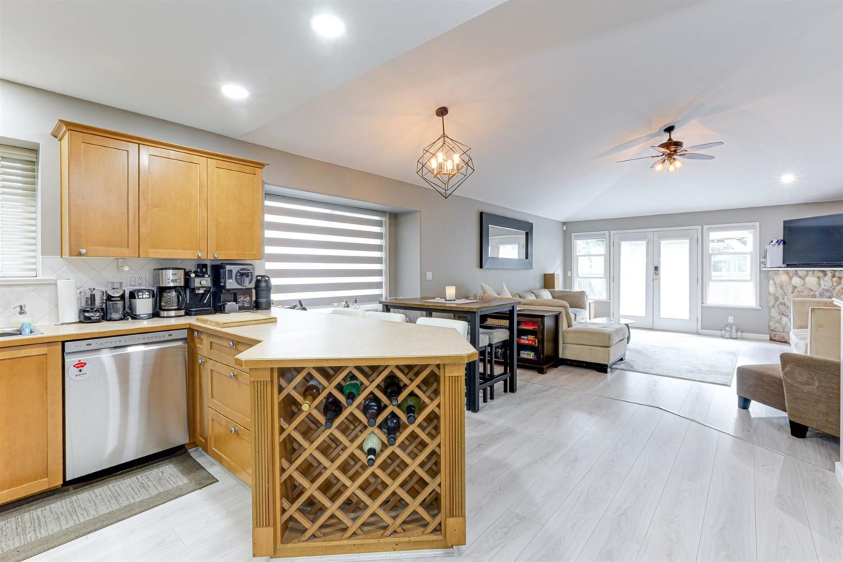 Cloverwoods rancher with a full basement. Custom built with a great room style with soaring ceilings. 3 bedrooms on the same floor plus a flex room as a den. Primary suite has a luxurious 5 pc. ensuite. Basement has a second kitchen and three bedrooms. The very private back yard on this spacious property has a beautiful pergola and stamped concrete patio perfect for outdoor barbecues. This home has a newer roof gutters and paint from a few years. Walking distance to Adams Road Elementary school and the new skytrain. Upscale neighborhood of fine homes.