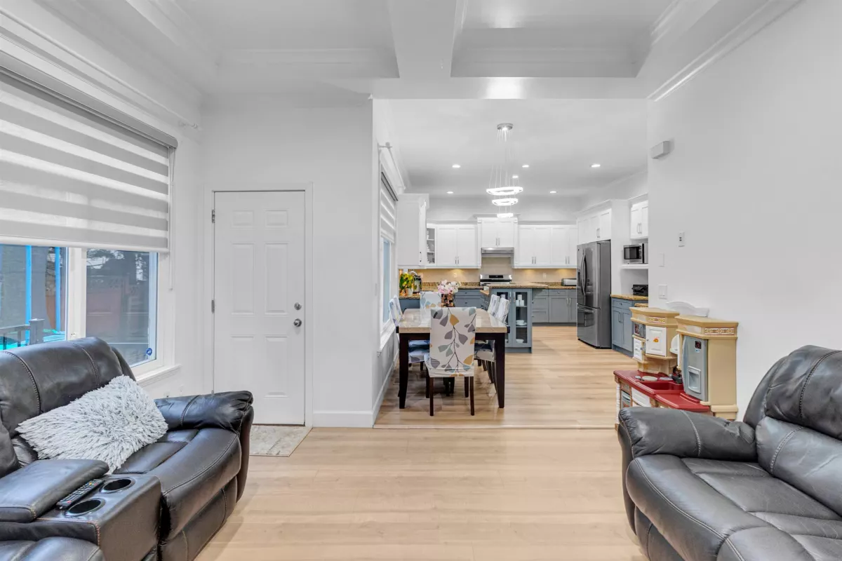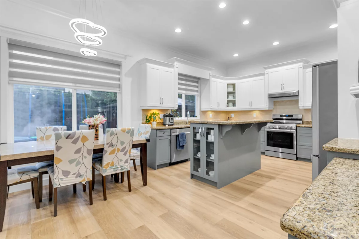 Stunning 7-bedroom, 6-bath home featuring vaulted ceilings, premium engineered hardwood, and a bright, open layout. The elegant living room showcases a large window, stylish feature wall, and stone fireplace. The gourmet kitchen offers high-end stainless steel appliances, granite counters, and a sleek waterfall island. The spacious family room includes custom built-ins and opens to a sunny backyard with a covered patio and custom BBQ—perfect for entertaining. Upstairs includes a designer primary bedroom plus three generous bedrooms with a Jack & Jill ensuite. A 3-bedroom basement suite rented at $2,700/month adds excellent income potential. Located in the Adams Road Elementary and Salish Secondary catchments, with a 240V EV charger included. 3-bedroom basement currently rented for $2300.