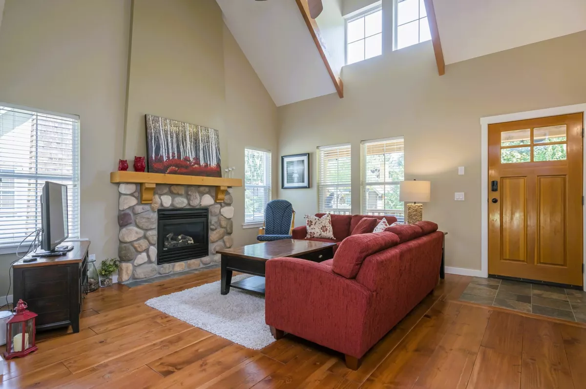 Your Lakeside Lifestyle Awaits! Discover this immaculate cozy 3-bedroom, 1,450 sq ft. cottage in the gated ‘The Cottages’ community - perfect for year-round living, a weekend retreat, or an investment. Enjoy access to a clubhouse, two pools, two hot tubs, a gym, tennis courts, playground, off-leash dog run, and boat storage just steps from your door. Inside, a vaulted great room with exposed beams and a cozy river rock fireplace sets the tone. The kitchen boasts granite counters, stainless steel appliances, and a gas stove, complemented by rich 9" hardwood floors. Double French doors open to a sunny, private deck surrounded by mature landscaping for year-round privacy. A rare opportunity to enjoy comfort and resort-style amenities in this ultimate family-friendly retreat.