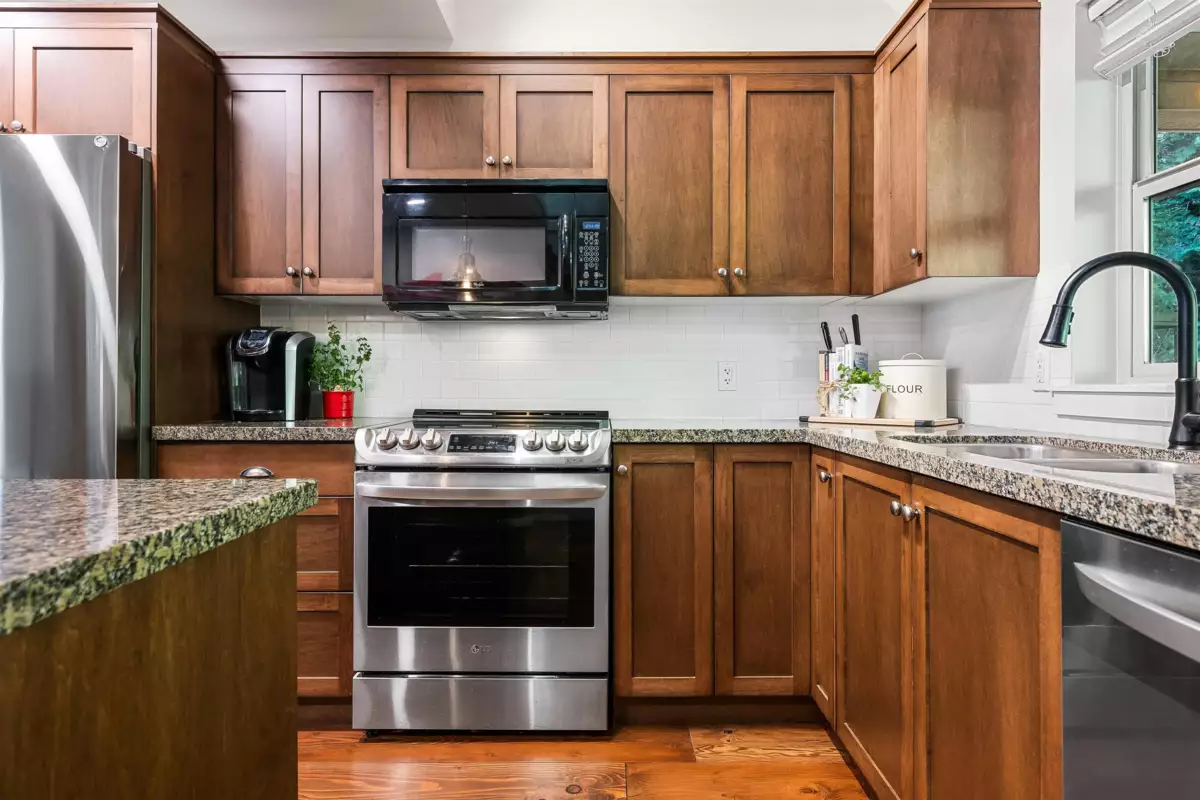 The Cottages at Cultus Lake-Nestled in a sought-after gated resort community, is the beautifully maintained, never rented 2 bedroom 2 bathroom 2 storey home that blends comfort with style. The vaulted great room features a river rock propane fireplace with reclaimed heavy wood mantle, and a loft above. Enjoy a country kitchen with island, shaker maple cabinetry, & spacious dining. Upgrades include reclaimed fir hardwood throughout the home, granite countertops, new appliances, updated baths, extended porches, paver stone driveway & walkway. Relax on the wraparound porch or explore the 10,000 sqft Treehouse, 2 pools, 2 hot tubs, fully equipped gym, theatre room, ball courts, parks, trails, off leash dog run, garden & more- all in a serene tree-lined setting. Live your best life here!