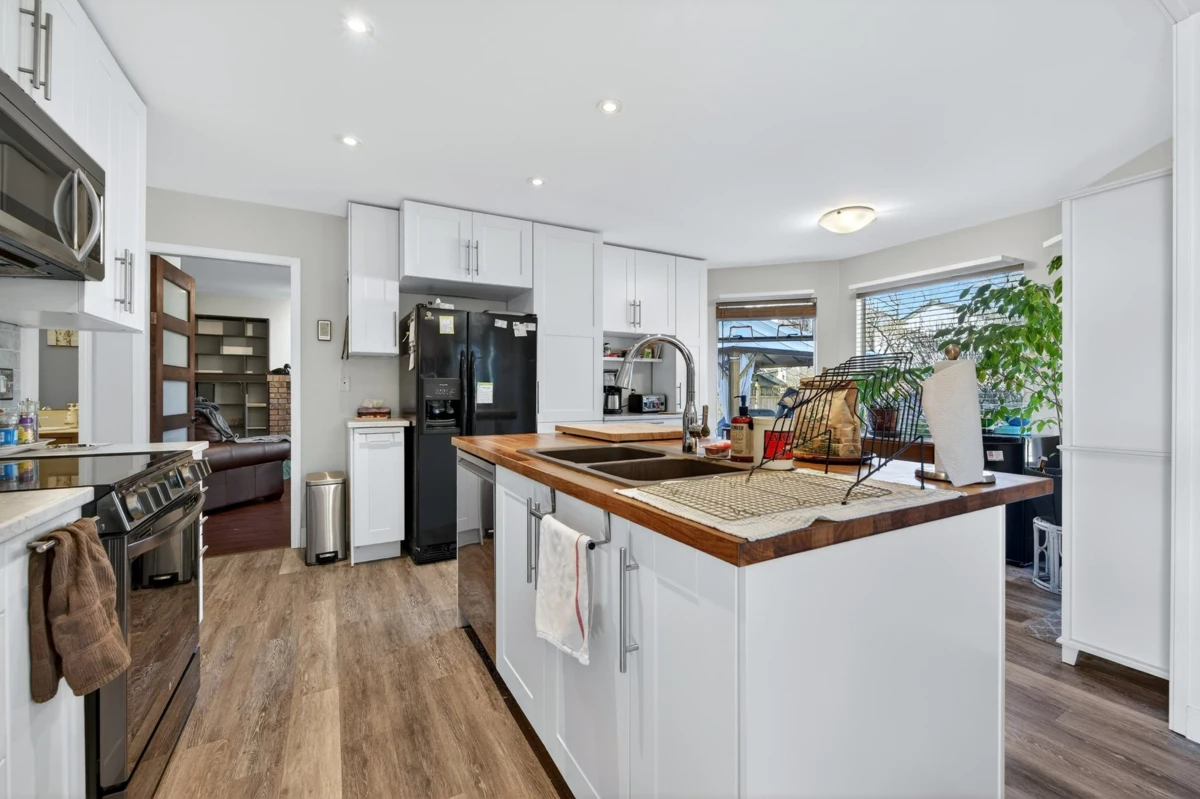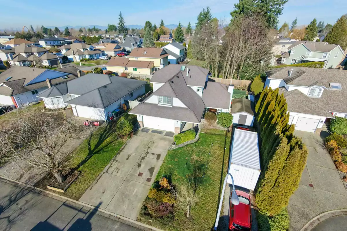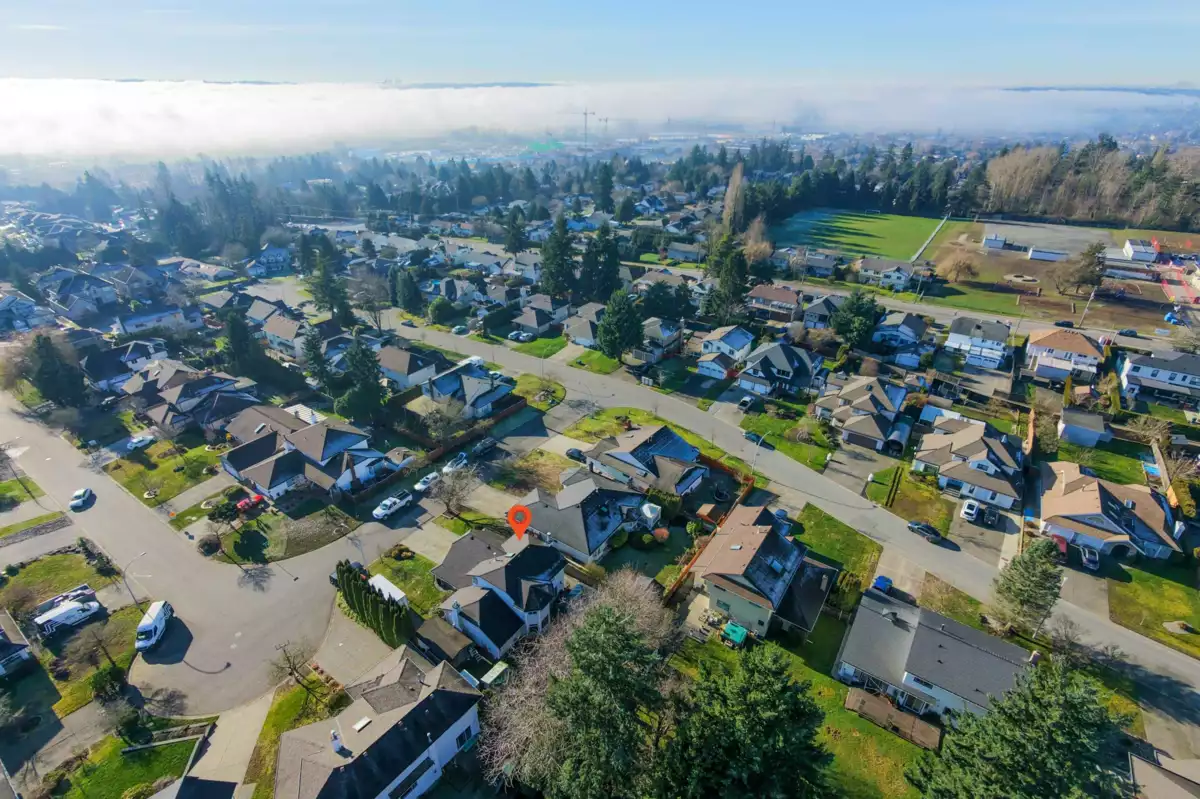 Rare opportunity on a quiet no-through street in an Amazing Neighbourhood! Beautifully maintained 4 bedroom, 3 bathroom home is ideally located near Martha Currie Elementary, Lord Tweedsmuir Secondary, parks, recreation, and amenities—perfectly situated between Cloverdale and Langley shopping. The main floor features a vaulted living room, dining area, and updated kitchen with smart storage, coffee bar, and island overlooking the private backyard. Bonus family room and den add flexibility. Upstairs offers 4 bedrooms or 3 plus a rec room. Enjoy a private yard with patio, fruit trees, playset, large storage shed, RV parking, second driveway, two-car garage, and extra parking. A great home on an amazing street. New Furnace and appliances. No presentation of offers until Feb 2, 2026 at 6PM