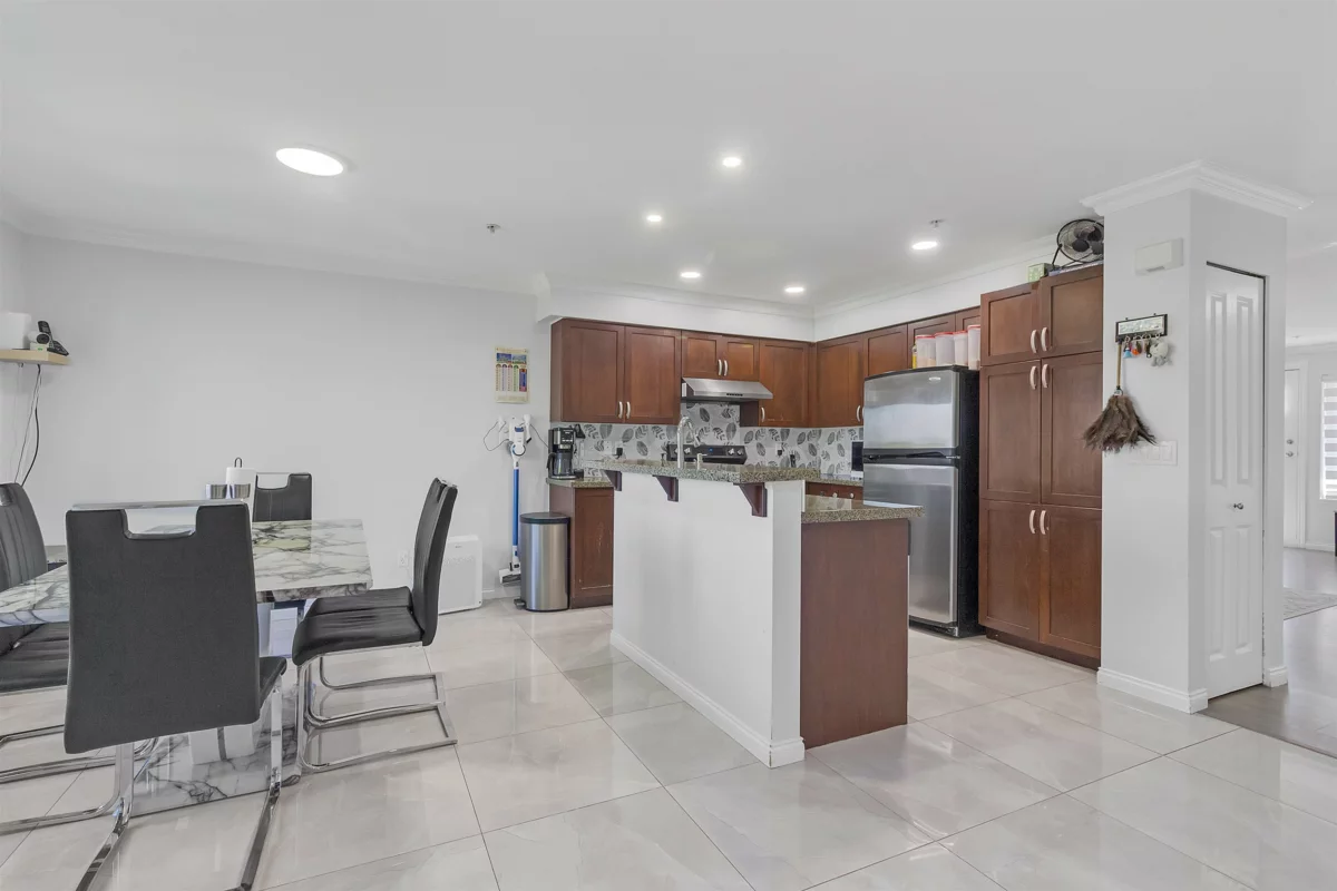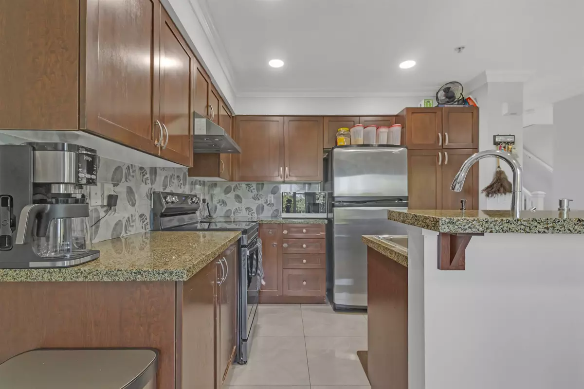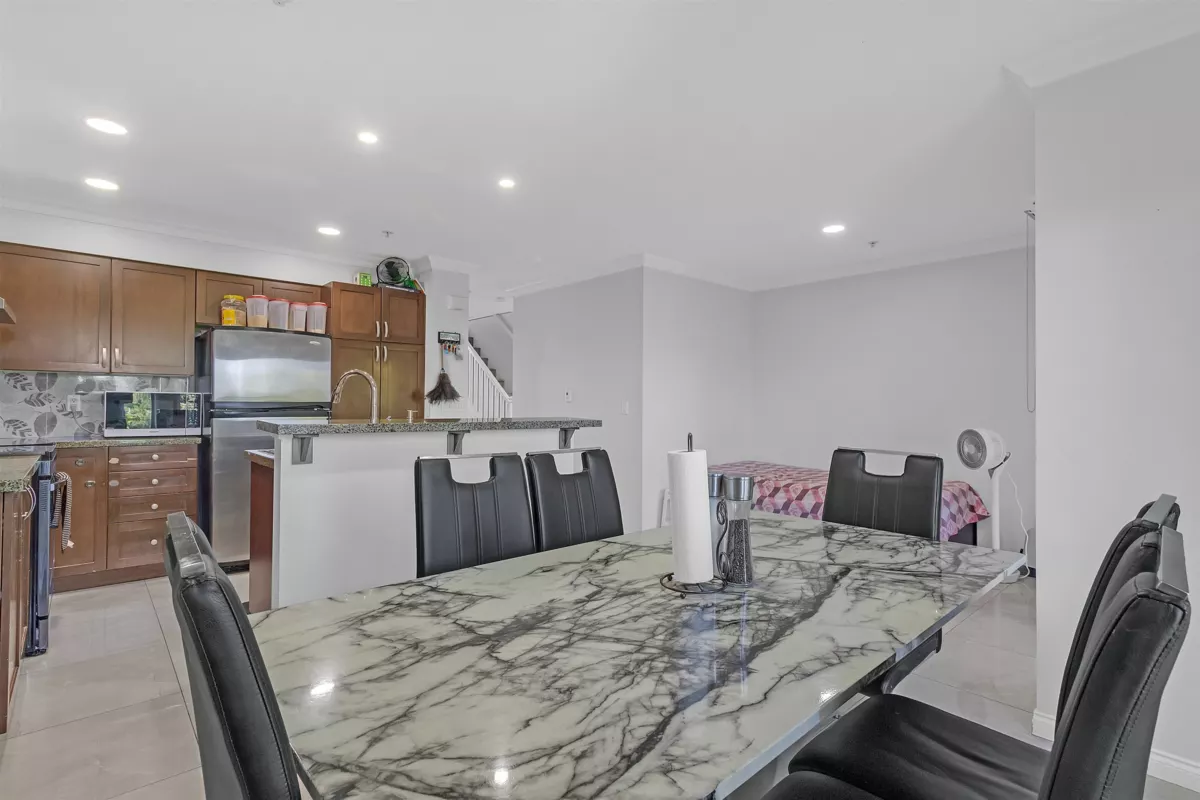 This well-kept and spacious three-level townhouse. $50,000 + in renovations. Features 4 bedrooms and a versatile rec room, ideal for a home office or extra living space. Located in a quiet complex, it offers granite countertops, laminate flooring, an electric fireplace, and four balconies including one off the primary bedroom with beautiful, unobstructed views. The home includes a covered double tandem garage and plenty of free street parking just steps away on 68 Avenue. Conveniently located within walking distance to Save-On-Foods, Scottsdale Mall, Wal-Mart, London Drugs, restaurants, banks, cinemas, and the Guru Nanak Sikh Gurdwara. Parks and schools are also nearby, making it a perfect choice for families.