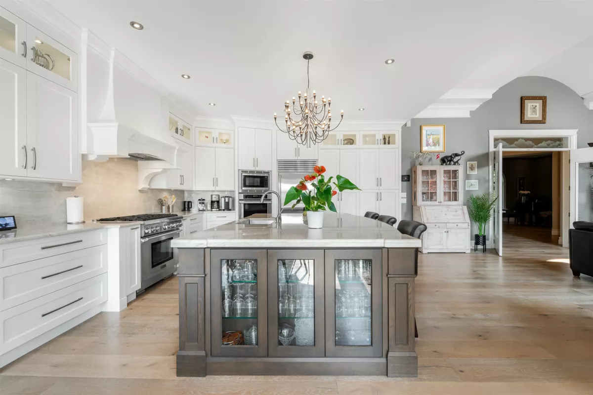 An exceptional gated estate offering rare privacy and elevated luxury in one of Cloverdale’s most coveted settings. Set on a sprawling 20,000 sq. ft. lot, this custom residence spans over 6,100 sq. ft. of refined living space, thoughtfully designed for sophisticated entertaining and effortless daily living. The designer chef’s kitchen features premium appliances, , and an oversized statement island. A serene main-level primary retreat includes a spa-inspired en-suite and walk-in closet. Expansive living and dining areas extend seamlessly to the outdoor, private terraces and gardens to enjoy with family or guests. Exceptional bonus 2,500+ sq. ft. flex space with parking for up to 10 vehicles. A truly distinguished offering close to the most sought after top schools, parks, and amenities.