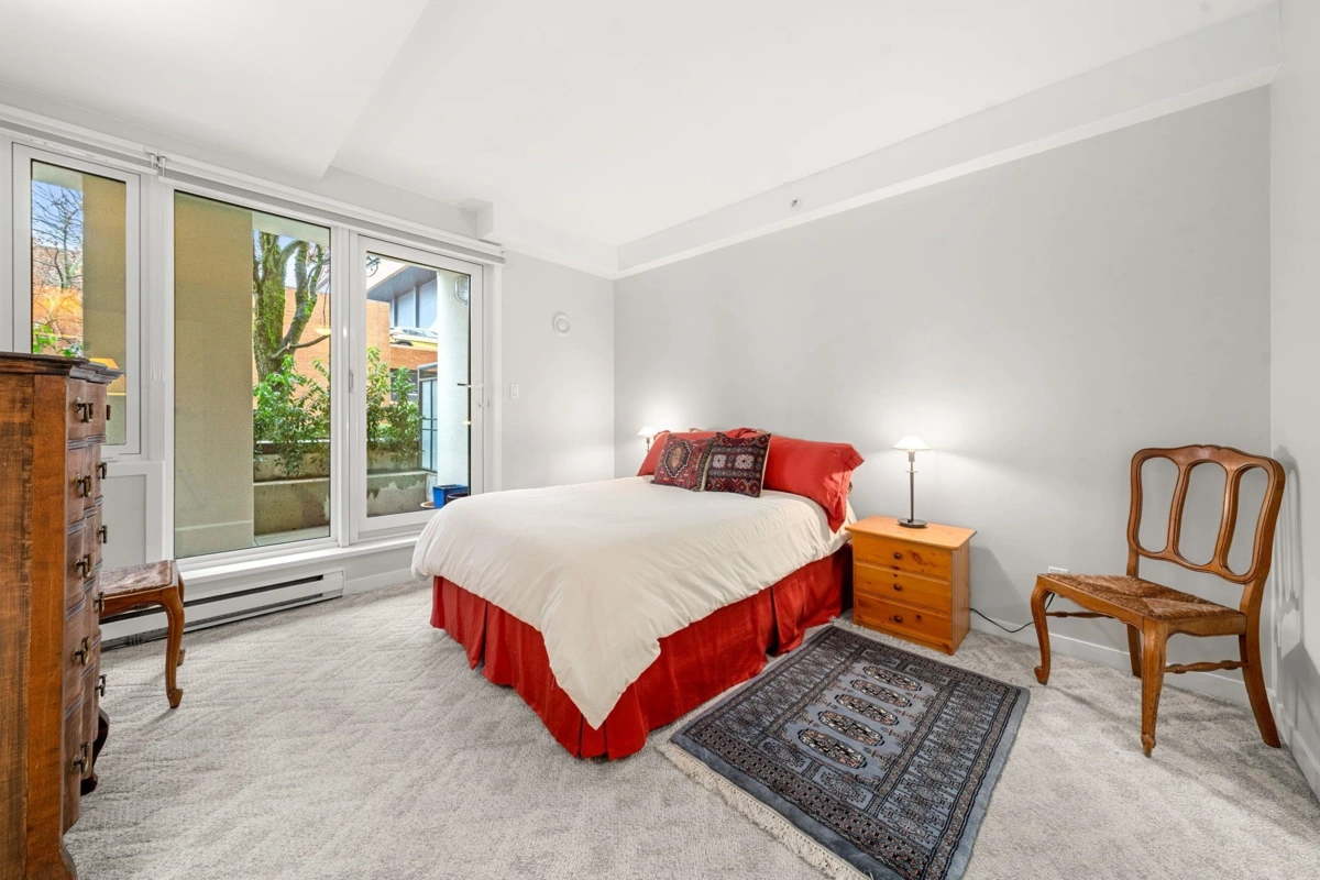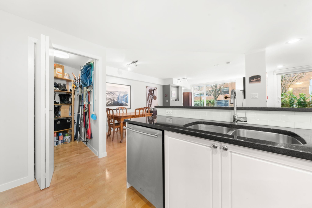 You've found a rare street-level private entry townhome in the heart of Kits! This 950sf 1 bed & 2 bath office delivers – the dining space, open kitchen, comfy living room and generous in-suite storage serves the first timer, the down-sizer, or the long-termer equally well. Hunter Douglas blinds, roller screens on every door, direct access to outdoors (pet owners rejoice!), fine finishings and a cozy fireplace deliver the whole package. Yorkville's building envelope has been completely re-done in the past five years - roof, siding, windows. The 97 walk score offers health, wellness, daily needs and your pick of food & drink — Oddfish and AnnaLena are steps away. The beach is 2 blocks west and bike paths abound. This is timeless, turn-key Kitsilano living. OPEN Thu 5-6p & Sat 2-4p
