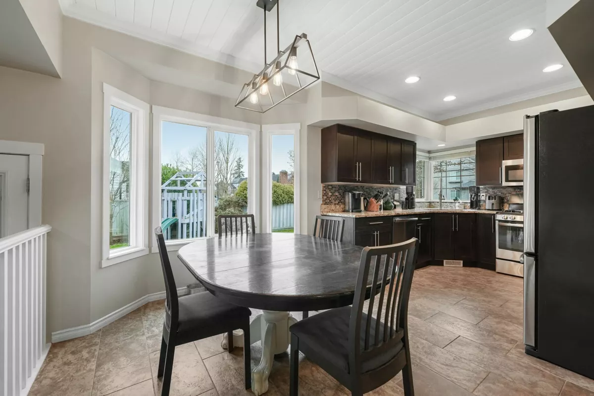 COMPLETELY RENOVATED Bright CORNER LOT! Centrally located in sought after CHARTWELL! This NOW 4Bdrm/4Bth PLUS Den with a modern layout feats kitchen w/Granite counters, tile b/splash & SS appliances w/Gas stove. Primary offers lg walk-in & Reno'd 3pc Ensuite. Updates incl: plumbing, furnace, HW tank, roof, flooring on main, heat pump (AC), EV charger-200 Amp service, Ship-lap ceilings, lighting, concrete fence + NEW Exposed Aggregate driveway. BONUS New Bdrm w/cozy Gas f/p & 3pc Ensuite on the MAIN Too! Enjoy your covered patio w/Gas line for BBQ/fire table in your f/fenced, private b/yard w/mature trees--Perfect for entertaining! Great neighbours, minutes to walking trails, all amenities & short walk to new sky train. EASY TO SHOW! OPEN HOUSE SAT JAN 31 & SUN FEB 1 11am-1pm.