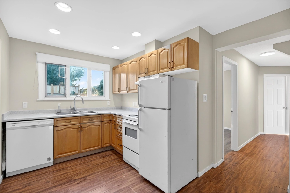 Beautifully updated 5 bdrm, 3 bathm family home in the heart of Pitt Meadows. This move-in-ready property feat a walk-out basemnt w/ sep entry ideal for extended family or future suite potential. The main level feat a fully reno’d kit (2025) w/ new cabinets, appl, flooring & fixtures—designed for modern family living. Extensive updates incl new roof, windows, bthrms, blinds, new HWT, newer furnace & fresh paint inside/out. Enjoy outdoor living on the large wrap-around balcony complete w/ a new staircase/aluminum railing & large backyrd perfect for family gatherings & entertaining. This home offers an oversized driveway w/ ample space for vehicles & RV parking. Located close to schools, parks, rec & amenities. This is an opportunity for families looking for space, comfort & long-term value.